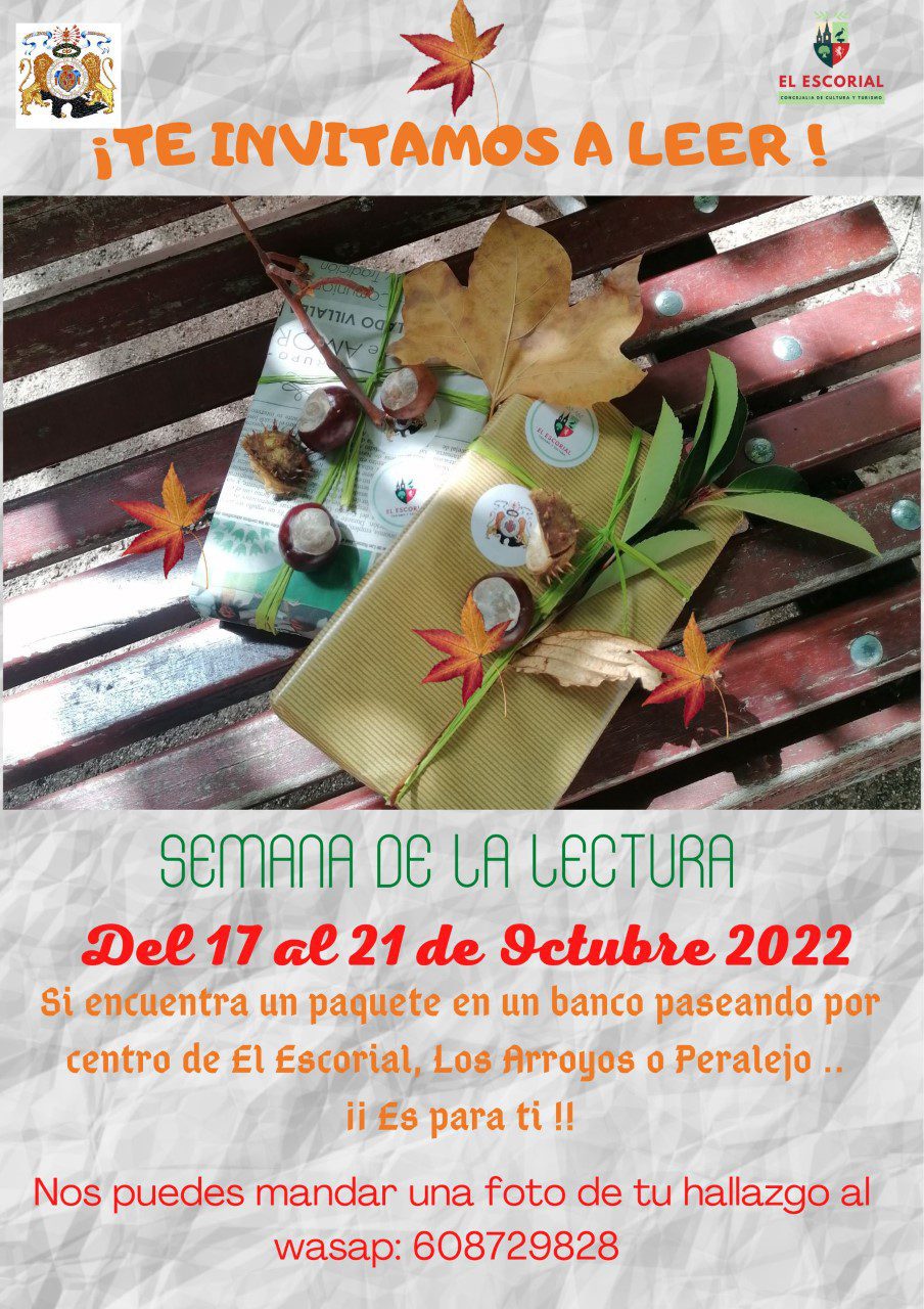 La Concejalía de Cultura lanza la campaña “Te invitamos a leer”. Del 17 al 21 de octubre se depositarán libros y cuentos infantiles en los parques y avenidas de El Escorial, Los Arroyos y Peralejo.