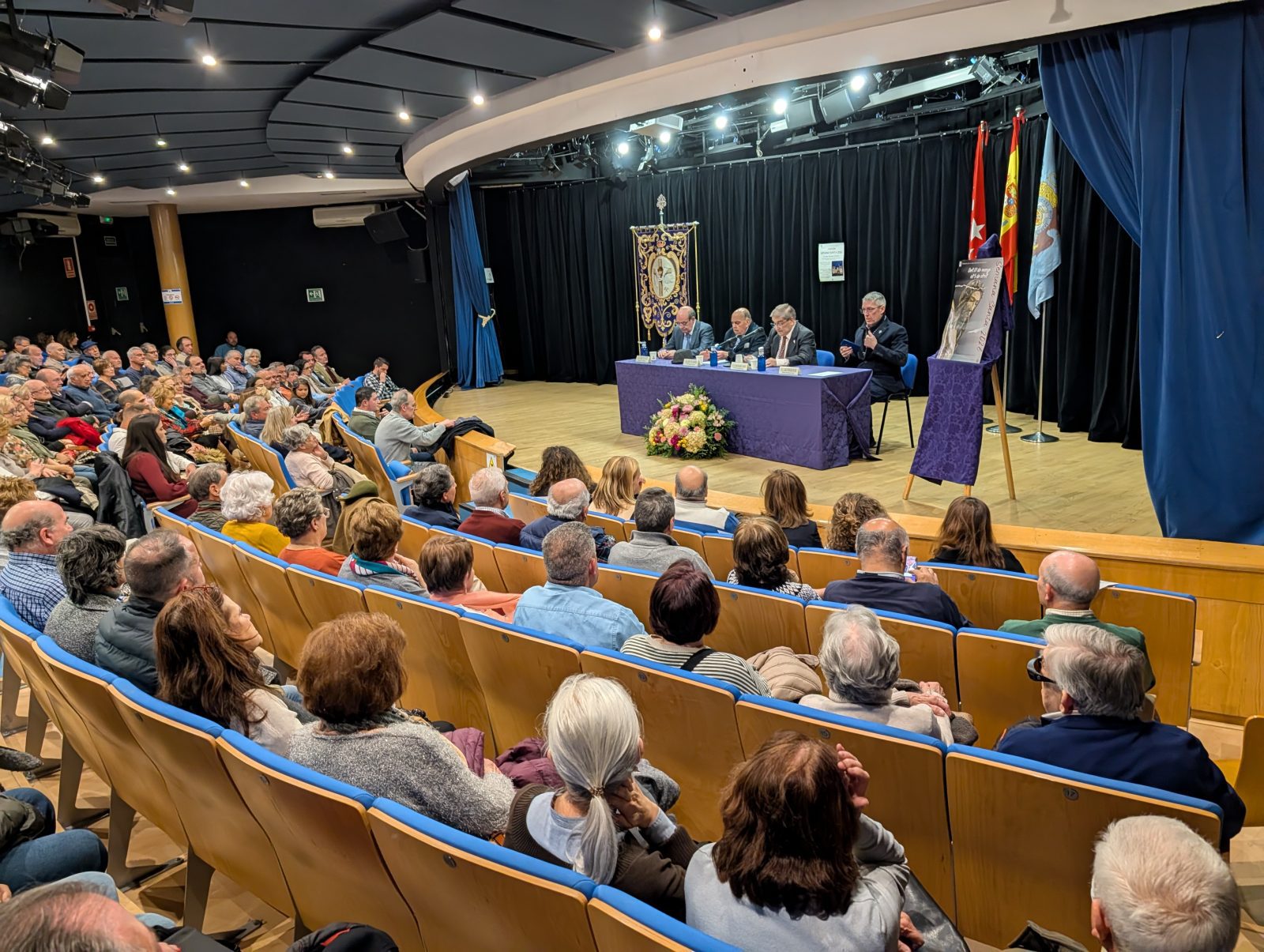 Familiares, amigos, miembros de la comunidad parroquial y vecinos llenaron la Casa de Cultura Pilar Herranz para asistir a este pregón, en el que repasó los Siete Dolores de la Virgen, una manera de compartir los sufrimientos más profundos de la vida de María, desde la profecía de Simeón en la presentación del Niño Jesús al entierro de Cristo en el Sepulcro, pasando por la huida a Egipto o la crucifixión y muerte de Jesús.
