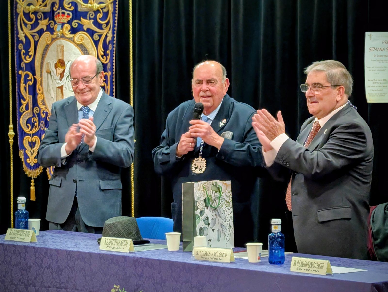 Acompañando a Javier Vicente estuvieron el Hermano Mayor de la Cofradía de la Vera Cruz, Carlos García, y el alcalde de El Escorial, Antonio Vicente, quien animó a los vecinos a participar de los actos de la Semana Santa Escurialense para «mantener vivas nuestras tradiciones».