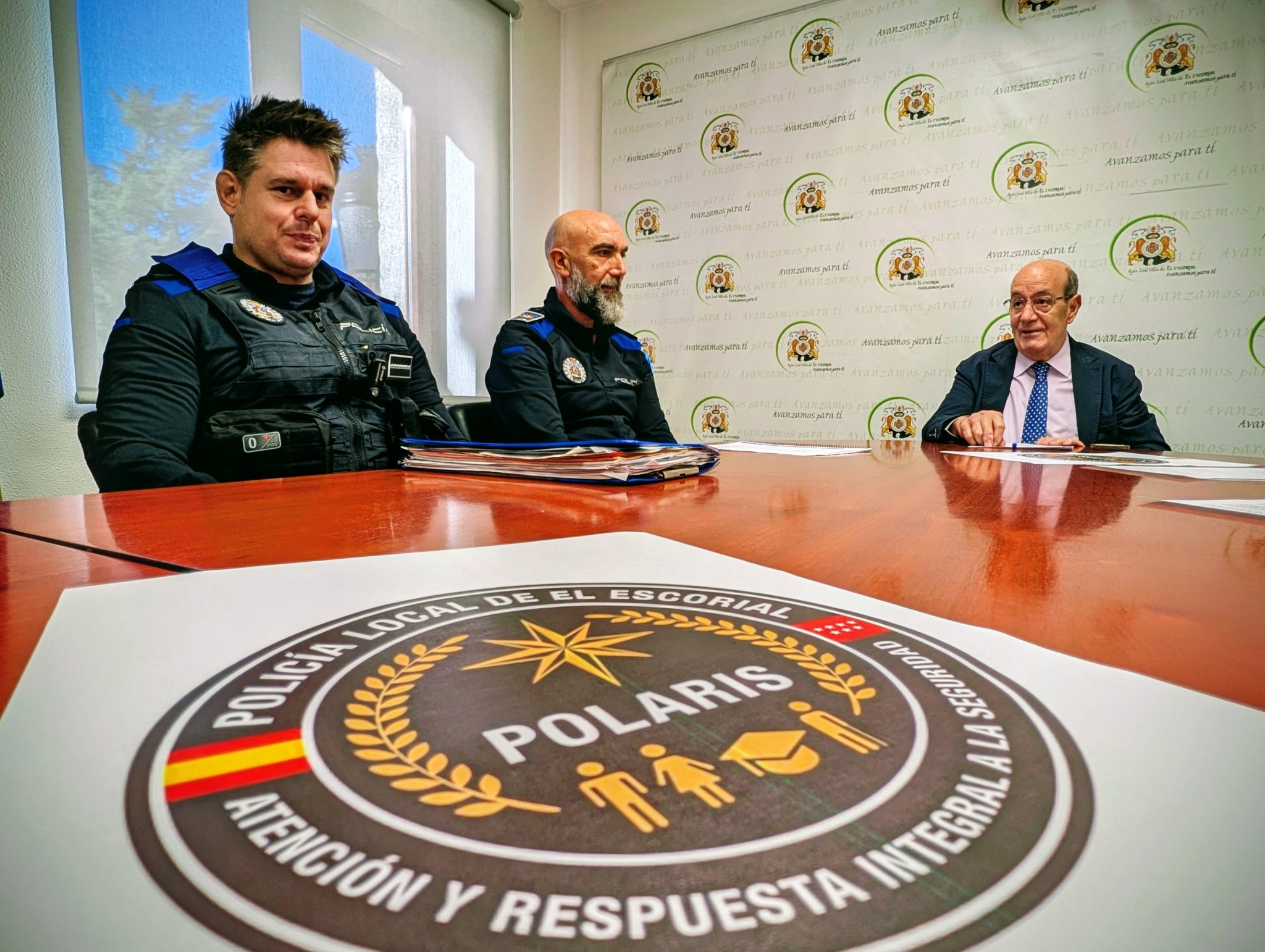 Ocho agentes y tres oficiales de la Policía Local de El Escorial integran el nuevo programa «Polaris», una unidad especializada en atención a menores y violencia intrafamiliar. Esta iniciativa, que se ha presentado hoy en el Ayuntamiento, hace como respuesta a la «creciente necesidad de ofrecer una seguridad ciudadana más cercana, humana y eficaz, preparándose para afrontar situaciones domésticas de diversa índole», explicó el oficial jefe de la Policía, Luis Chamizo.