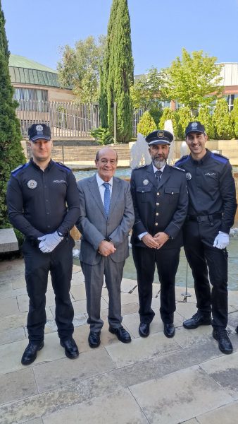 La Policía Local de El Escorial continúa mejorando para dar un mejor servicio a los vecinos. El pasado jueves 24 de julio, dos agentes del cuerpo municipal recibieron sus correspondientes titulaciones tras finalizar satisfactoriamente el curso de ascenso a la categoría de oficial. En el acto, además de policías de otros municipios, participó el alcalde de la localidad, Antonio Vicente.