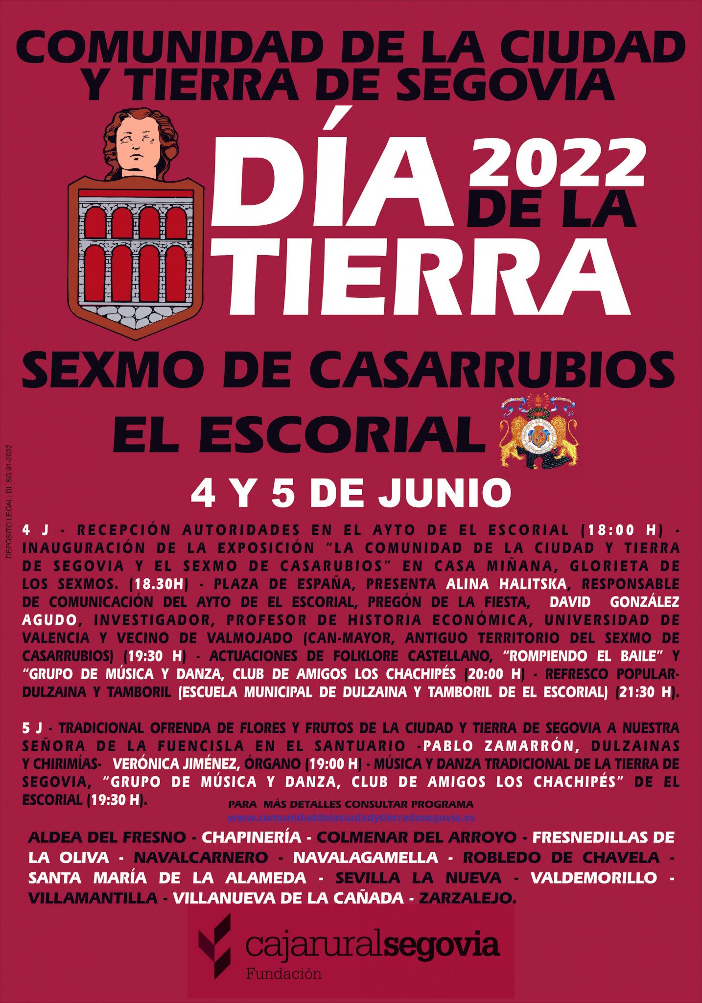 La fiesta del Día de la Tierra de la Comunidad y Tierra de Segovia, organizada en esta ocasión por el Sexmo de Casarrubios, se celebrará en el El Escorial y la capital del Acueducto los días 4 y 5 de junio.