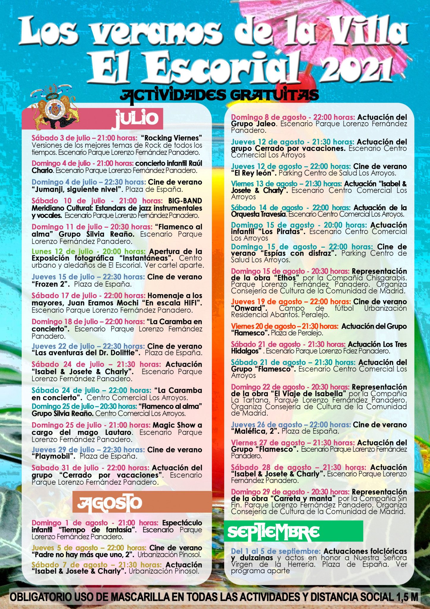Cine, música, actuaciones infantiles, espectáculos de magia, … así es el amplio y variado programa cultural y de ocio gratuito, seguro y al aire libre del que podrán disfrutar los vecinos y visitantes de El Escorial durante todos los fines de semana de julio y agosto. El Ayuntamiento ha elaborado, en colaboración con grupos, asociaciones locales y artistas, un programa de actividades orientado a todos los públicos que amenizará las noches de verano a partir del 3 de julio.