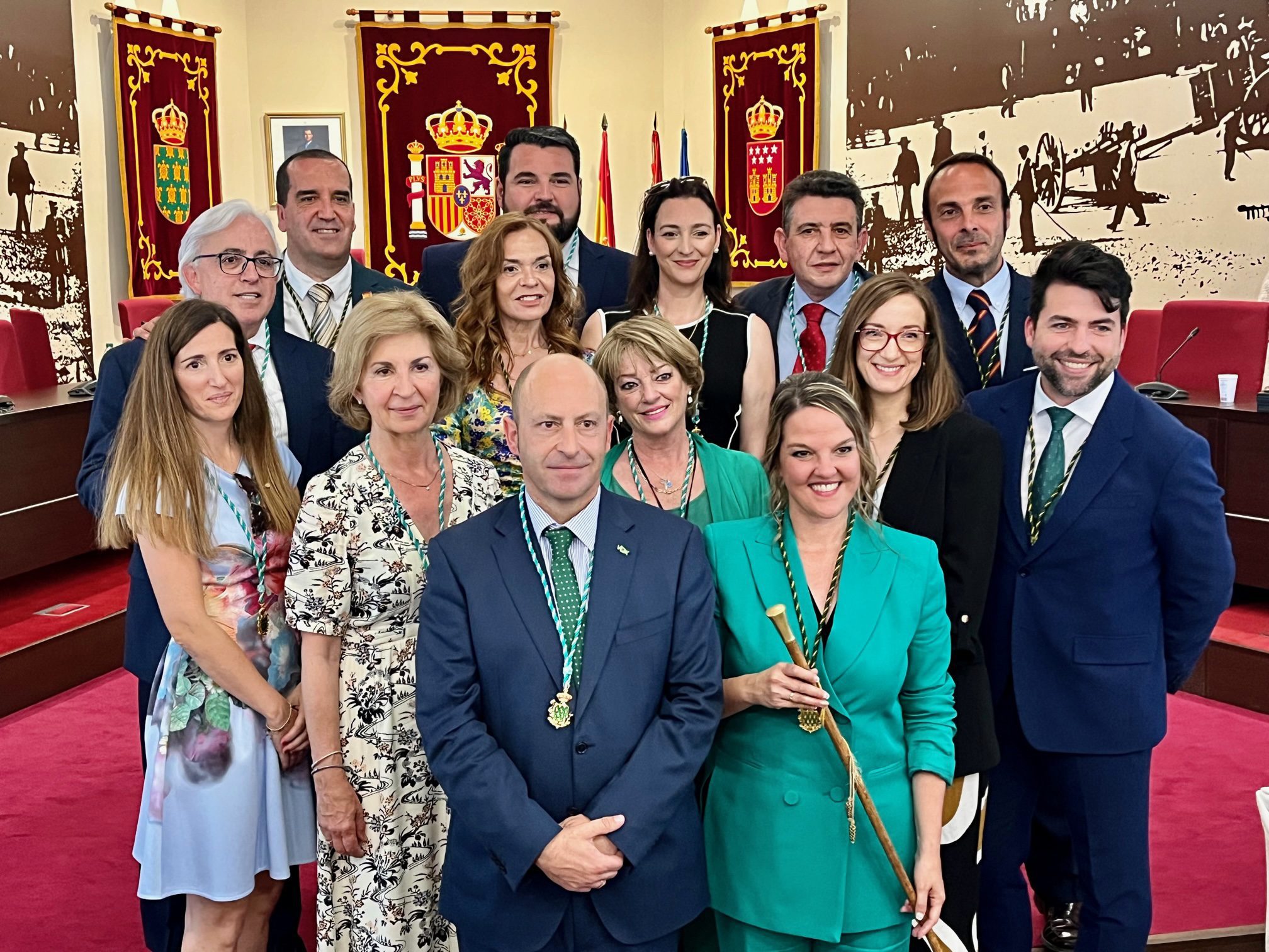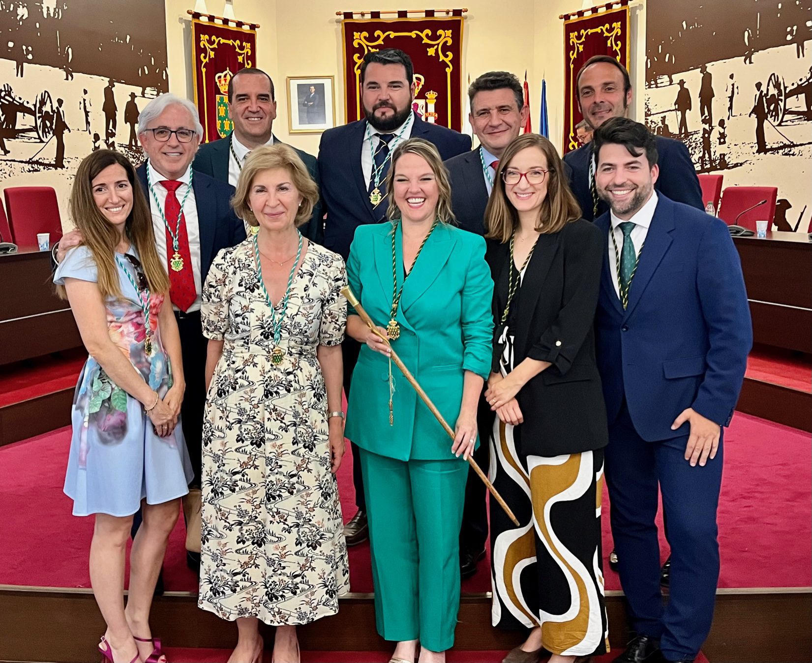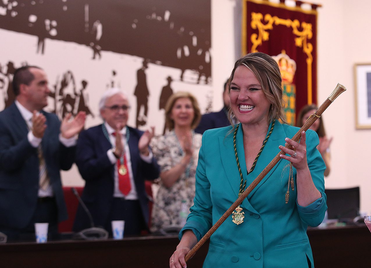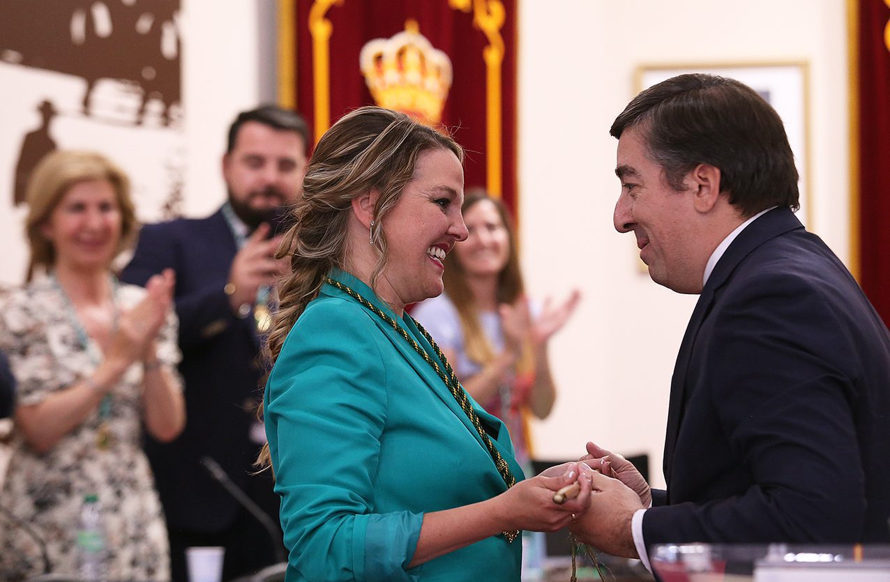 Antes, la sesión de constitución de la nueva Corporación municipal comenzó con la toma de posesión de los concejales y la votación para elegir a la alcaldesa, en la que no hubo sorpresas: cada uno de los grupos se votó a sí mismo, salvo Vox que, tal como se anunció ayer, apoyó al PP, de modo que Carla Greciano recibió el ‘sí’ de 14 de los 21 ediles del Ayuntamiento. “Es evidente que es la alcaldesa”, resumió la presidenta de la mesa de edad, Josefina Álvarez (PSOE), dando paso al simbólico traspaso del bastón de mando, que el alcalde saliente, Alberto Gómez, entregó a Carla Greciano.