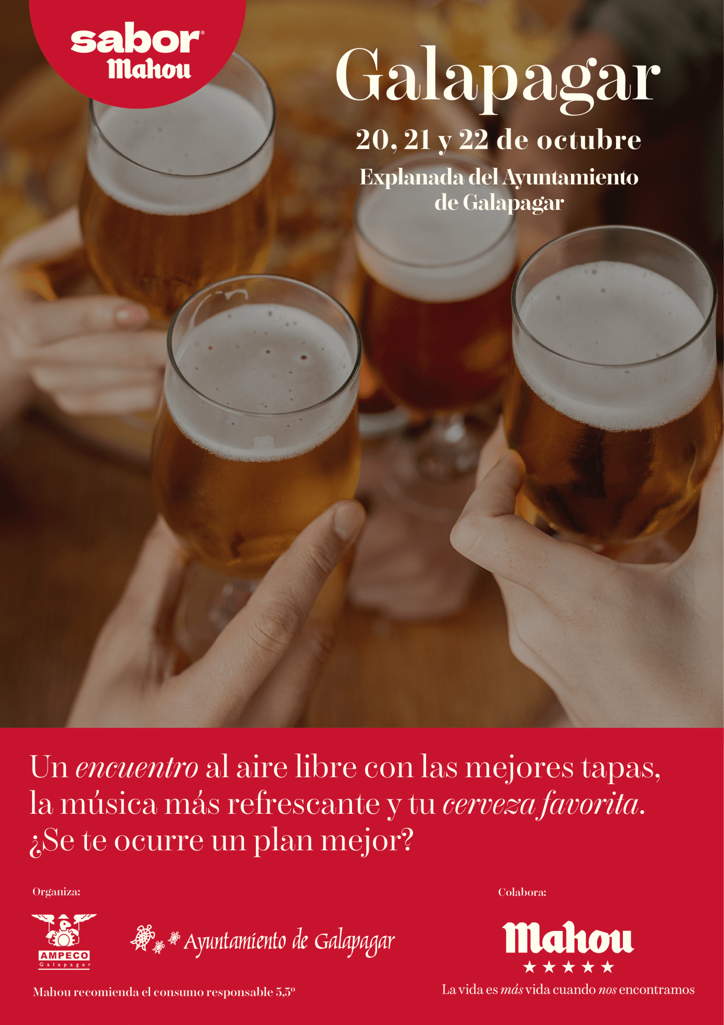 Se trata de la primera edición del Festival Sabor Mahou Galapagar, que llega de la mano de los hosteleros locales junto con la conocida marca de cerveza madrileña. En total participan ocho hosteleros galapagueños, que se instalarán en la plaza del Presidente Adolfo Suárez y que han preparado para la ocasión sus elaboraciones más exquisitas: