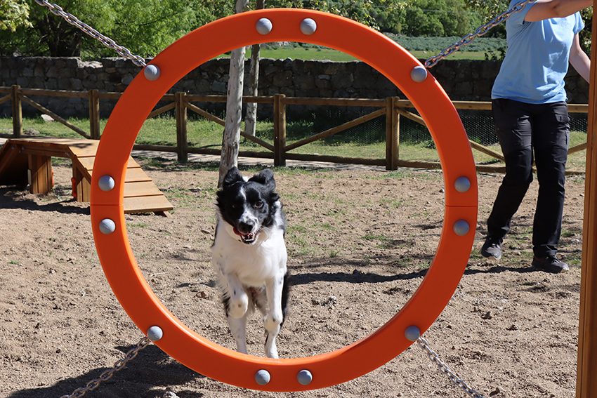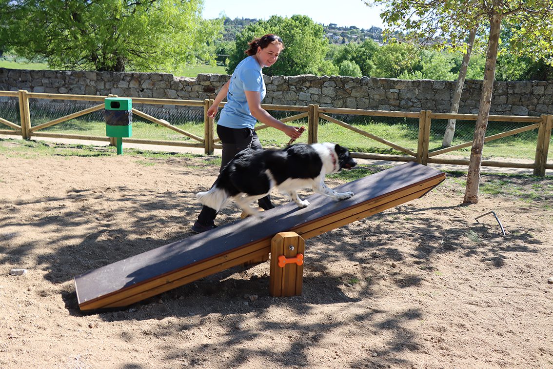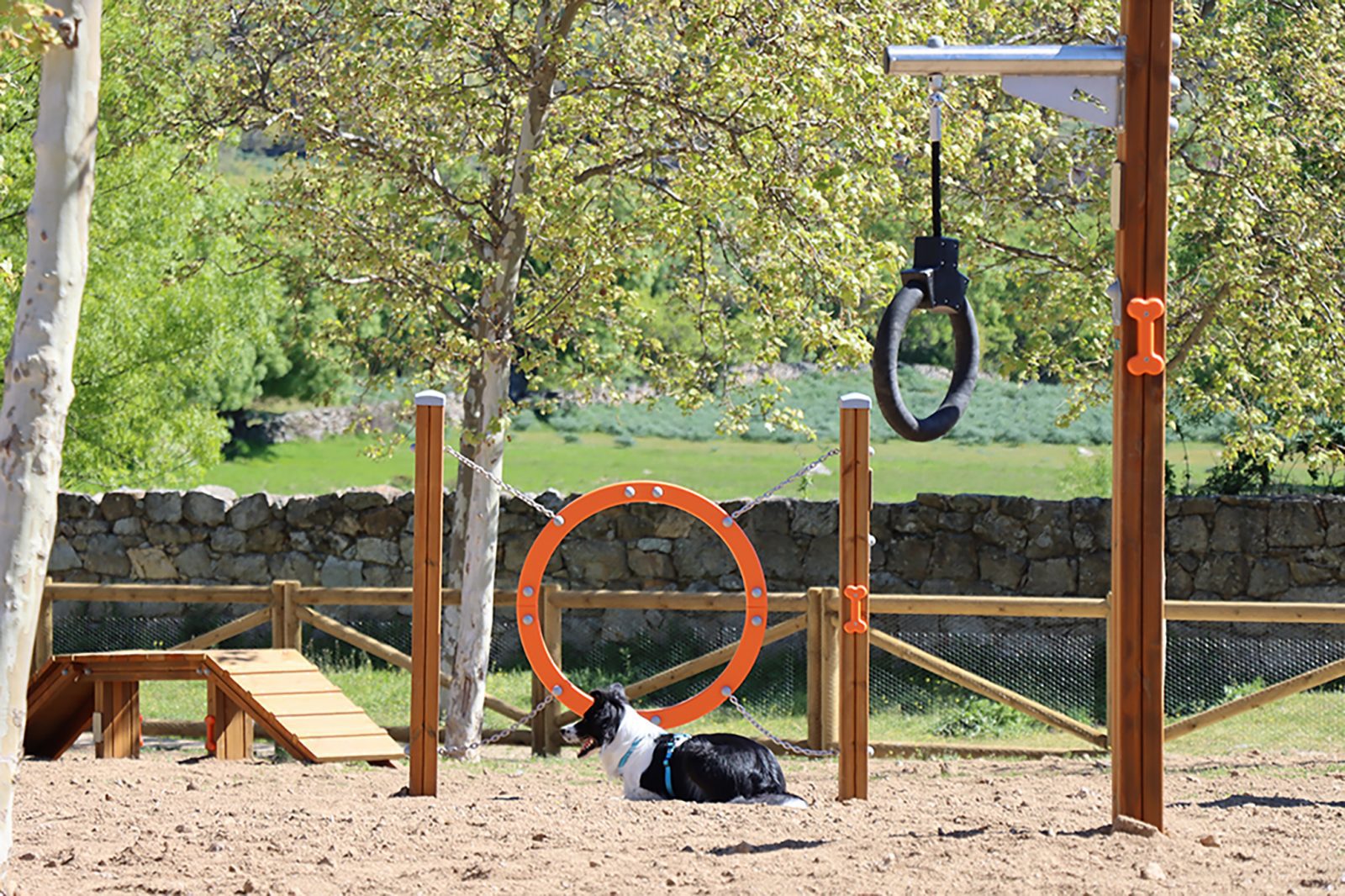 El nuevo espacio incorpora un circuito de agility profesional con 14 elementos de entrenamiento, fabricados en materiales de alta resistencia como polietileno de alta densidad y madera tratada, cumpliendo con la normativa europea de seguridad UNE-EN 1176. Entre los elementos instalados destacan pasarela, túnel, balancín, empalizada, rampa de saltos, slalom de postes y panel con anillo suspendido, diseñados para favorecer tanto el ejercicio físico como la estimulación mental de las mascotas.