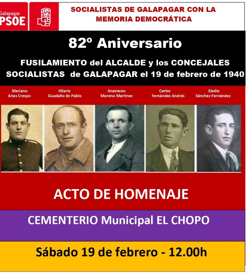 El PSOE de Galapagar rinde homenaje este sábado al alcalde y los concejales fusilados tras la Guerra Civil
