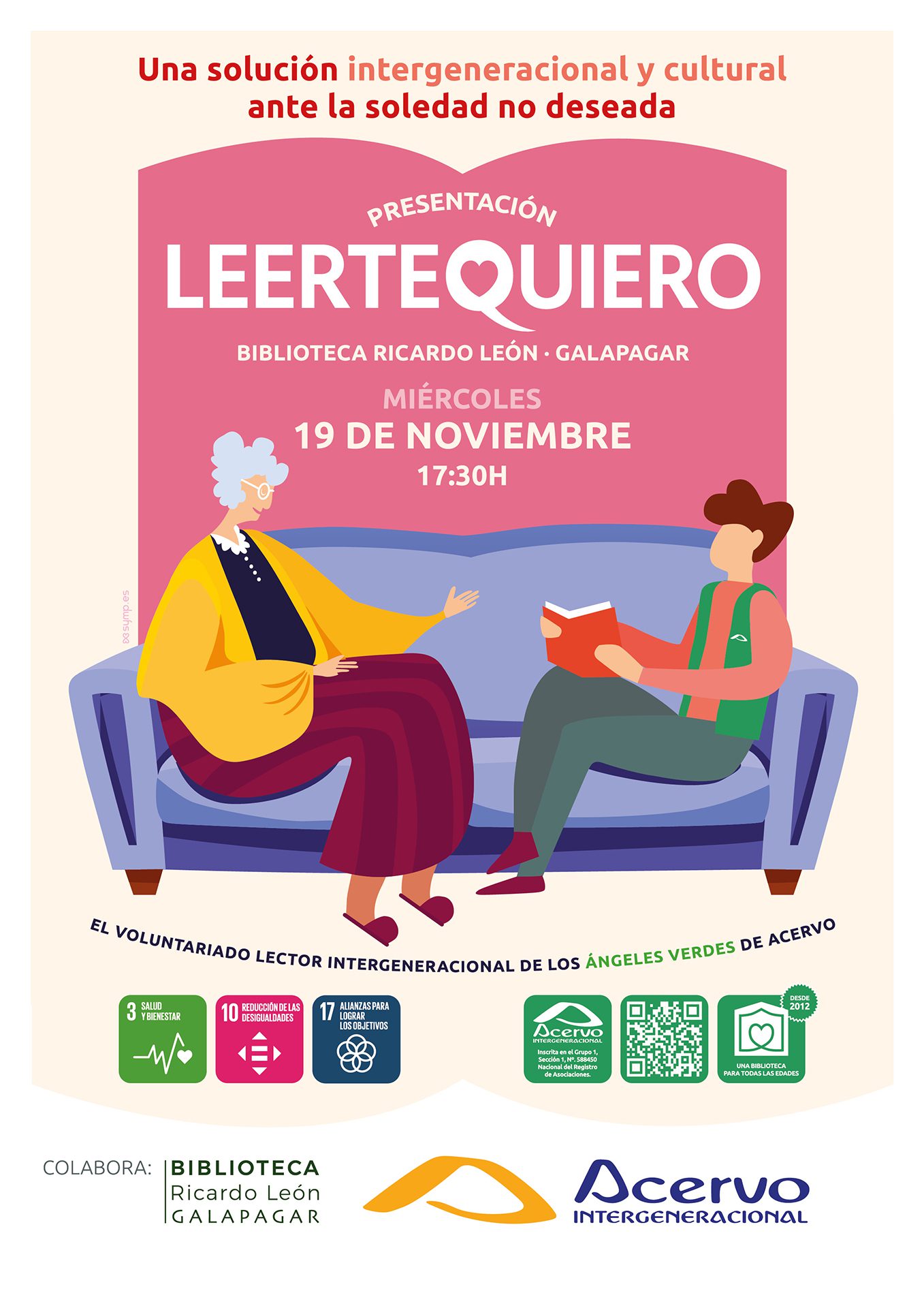 Por otra parte, la Biblioteca Ricardo León, de la mano de la ONG Acervo Intergeneracional presentará el miércoles 19 de noviembre a las 17:30 horas su programa “Leertequiero” en la Biblioteca Municipal. Esta iniciativa intergeneracional crea parejas lectoras entre voluntariado y mayores con movilidad reducida para ofrecer lectura y compañía en el domicilio.