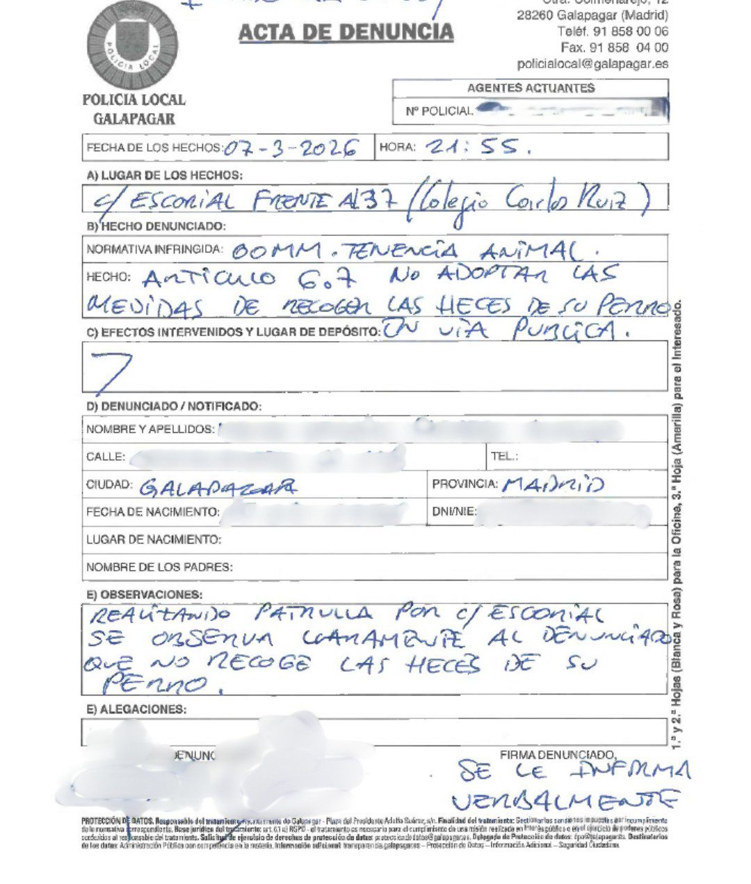 El Ayuntamiento de Galapagar de Galapagar ha querido dejar claro que «no era un bulo», sino que efectivamente ha decidido «poner freno a las actitudes incívicas de algunos dueños de perros que no se preocupan de recoger las heces de sus mascotas y dejan las calles sucias y malolientes». Hasta tal punto no era fake, como algunos habían señalado, que el Consistorio ha hecho pública una de las denuncias emitidas por la Policía Local que, ya sea con sus agentes en sus patrullas de vigilancia a pie o con la ayuda de los drones, están logrando escarmentar de esta manera a los vecinos que no quieren contribuir y cumplir las normativas municipales.