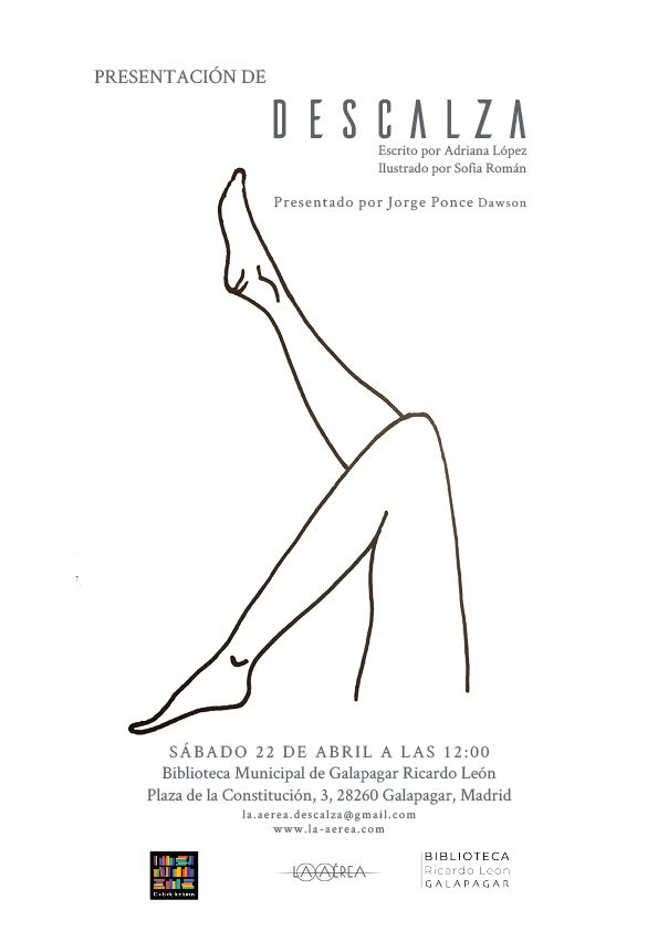 “Descalza” es el título del primer libro de Adriana López, acompañado de ilustraciones de Sofía Román. Autoeditado y publicado en diciembre 2022, relata la historia de una mujer presentada en forma de diálogo interno, poesía o relatos, que reflexionan sobre sus vivencias haciendo que el lector forme parte de sus más profundos pensamientos, y acompañándola por este viaje en el que pasará por diferentes capítulos hasta enamorarse.