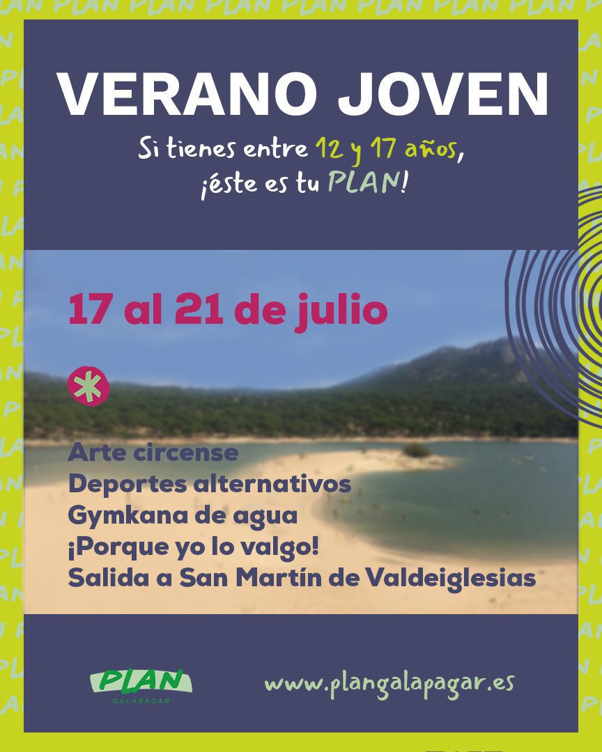La Concejalía de Juventud propone este verano actividades gratuitas semanales, dirigidas a jóvenes de entre 12 a 17 años de Galapagar, hasta el 28 de julio. Los jóvenes interesados en participar en estos “planes semanales” que se organizan desde Punto Joven, deberán apuntarse a través de www.plangalapagar.es