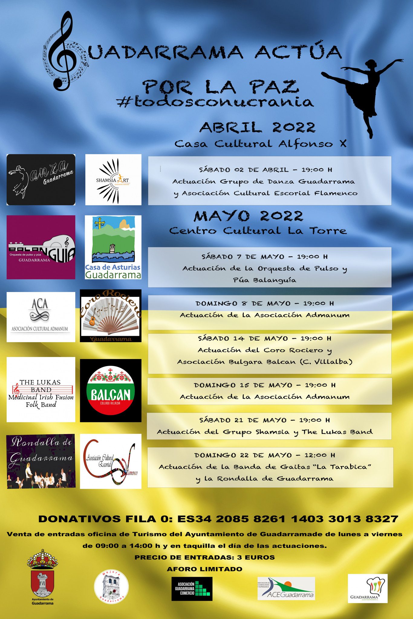 Varias asociaciones y grupos musicales se han unido en Guadarrama para componer un programa de actuaciones destinado a recaudar fondos para ayudar a los refugiados de Ucrania, bajo el lema “Guadarrama actúa por la paz”.