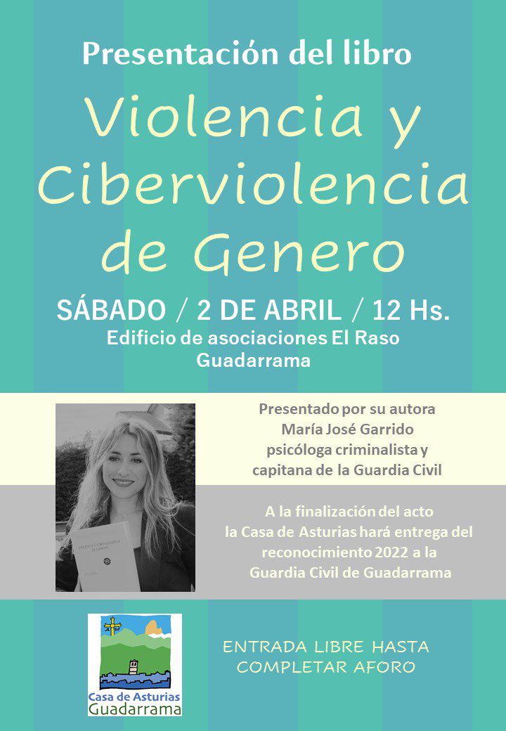 El acto comenzará a las 12:00 horas, en la sede de la Casa de Asturias en Guadarrama, situada en el edificio de asociaciones de El Raso, en la calle de Los Escoriales, 3, con la presentación del libro «Violencia y ciberdelincuencia de género», de la psicóloga María José Garrido, capitana de la Guardia Civil, adscrita a la Secretaría de Estado de Seguridad.