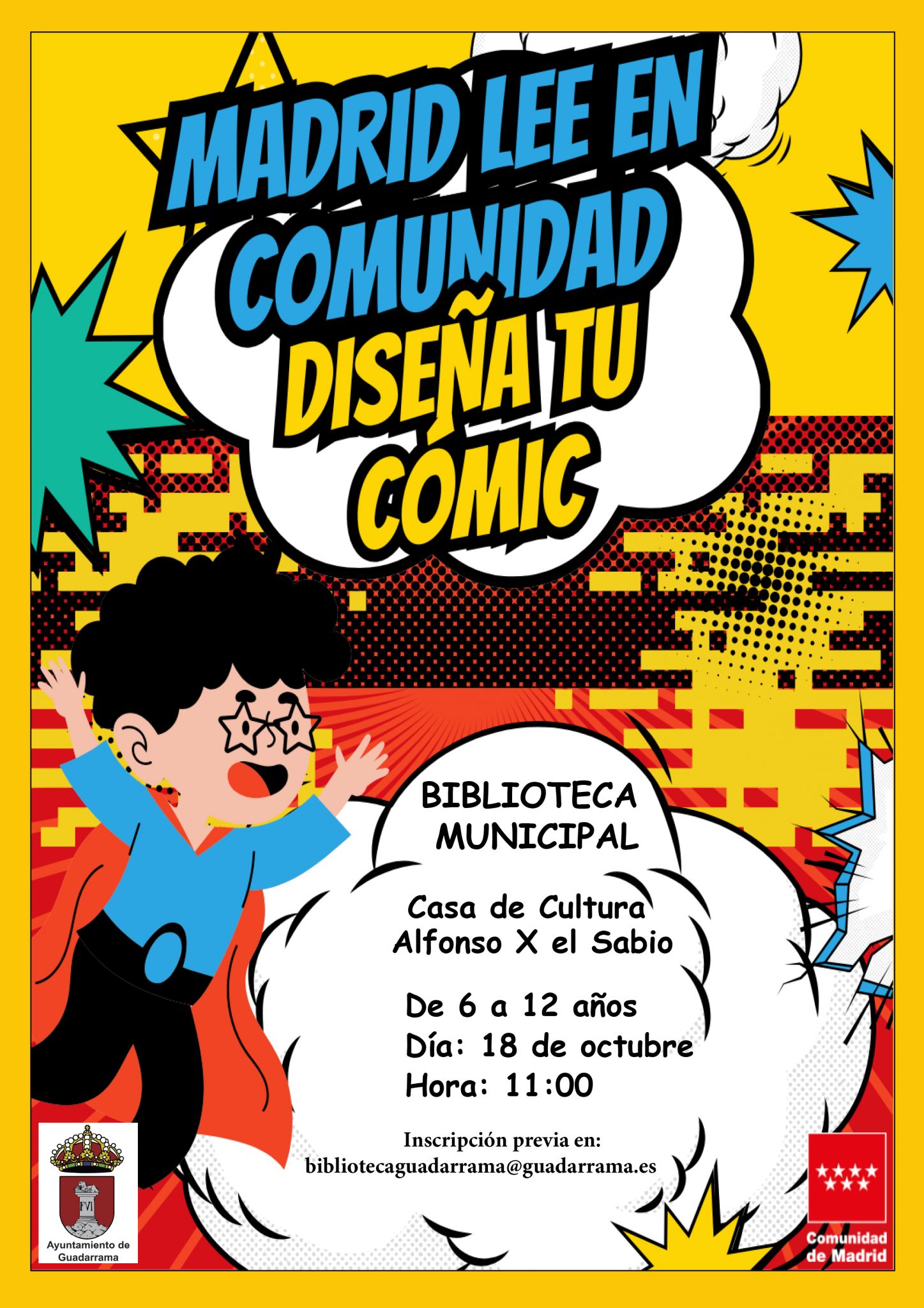 La Biblioteca Municipal de Guadarrama “Arcipreste de Hita” celebrará, el próximo sábado 18 de octubre, un taller para realizar un cómic, iniciativa que se incluye dentro de la campaña Madrid Lee en Comunidad.