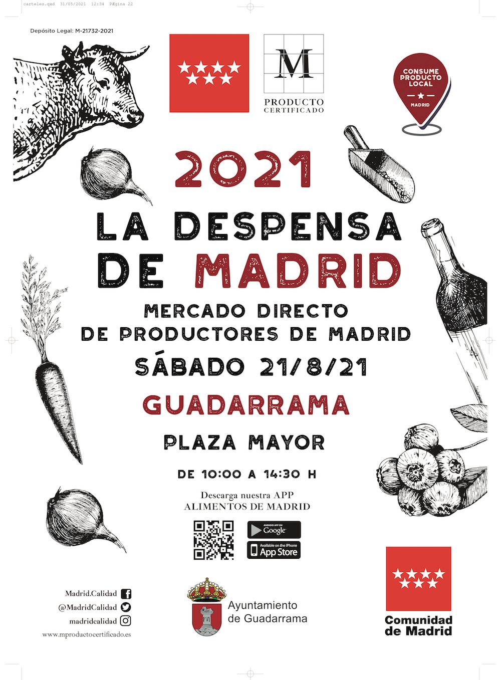 El mercado de productos de la región “La Despensa de Madrid” visitará Guadarrama este sábado, 21 de agosto, de 10:00 a 14:30 horas. Una iniciativa impulsada por el Gobierno regional que cumple su novena edición recorriendo los municipios madrileños. El evento permitirá a los visitantes conocer directamente de manos de sus productores la mejor oferta agroalimentaria de la Comunidad de Madrid. Entre los productos que podrán adquirirse, destacan carne, cerveza, verduras, hortalizas, lácteos, pan y dulces, aceites, y vinos con la denominación de origen Vinos de Madrid. La producción ecológica contará con una importante representación.