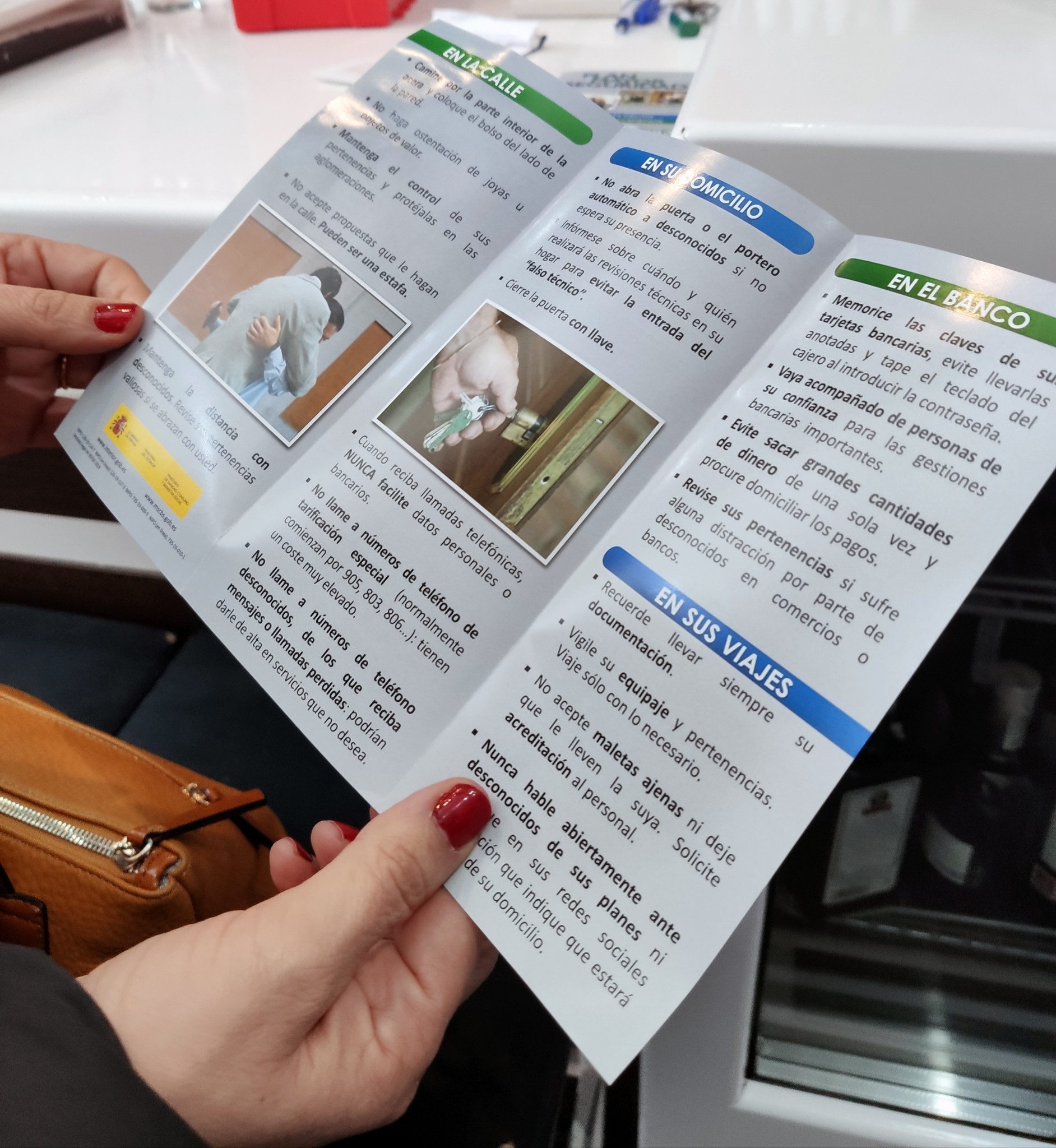 Caminar por la parte interior de la acera, colocar el bolso en el lado de la pared, usar bolsos de asa o que no lleven correa, evitar hacer ostentación de joyas u otros objetos de valor, no aceptar ninguna propuesta que se pueda ofrecer en la calle, por muy ventajosa que parezca, no llevar anotadas las claves de las tarjetas, vigilar siempre los alrededores de los cajeros, no sacar grandes cantidades de dinero, no confiar en supuestos mensajes de banco en los que se soliciten claves secretas y números de tarjetas bancarias o desconfiar de chollos y ventajas en la red, son algunos de los consejos que se recogen en los folletos explicativos que se han distribuido por los establecimientos y comercios de Guadarrama.