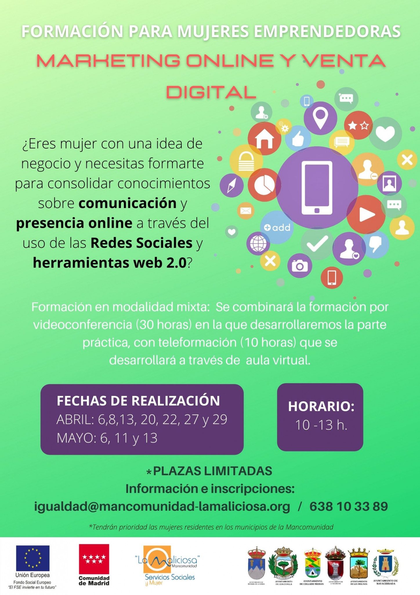 La Mancomunidad de Servicios Sociales y Mujer “La Maliciosa” ha abierto ya las inscripciones para participar en el taller de marketing online y venta digital para las mujeres empresarias o con proyecto empresarial, que quieran mejorar sus posibilidades de negocio a través de internet.