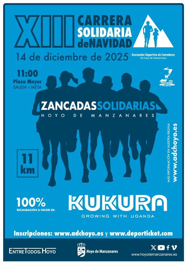 La XIII Edición de las ‘Zancadas Solidarias’ de Hoyo de Manzanares dará el pistoletazo de salida el próximo 14 de diciembre desde la Plaza Mayor. Organizada anualmente antes de Navidad por la asociación local de corredores ADC Hoyo, en colaboración con el Ayuntamiento, se trata de un evento solidario que ha adquirido gran reconocimiento en la Comunidad de Madrid y al que todos los vecinos están invitados a participar.