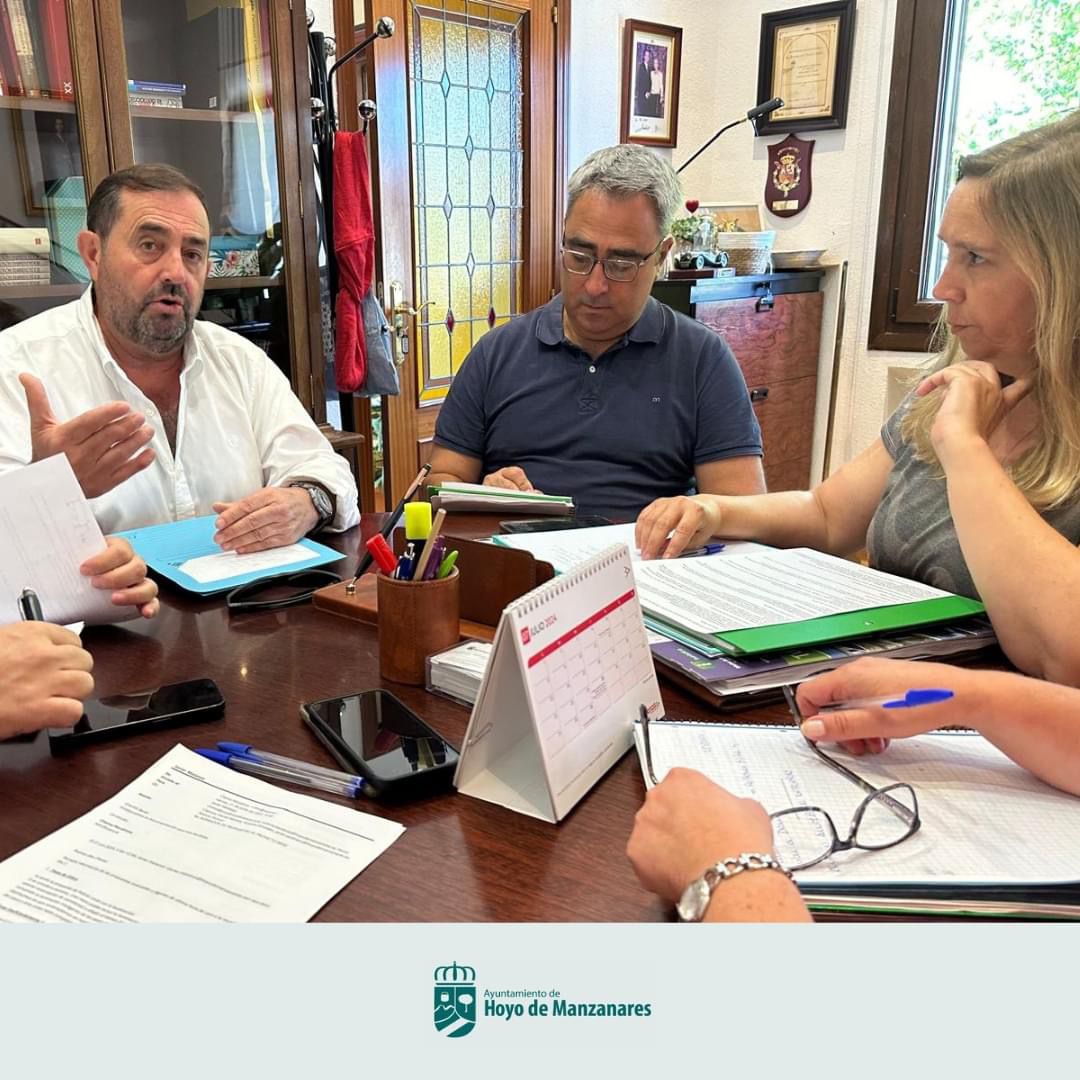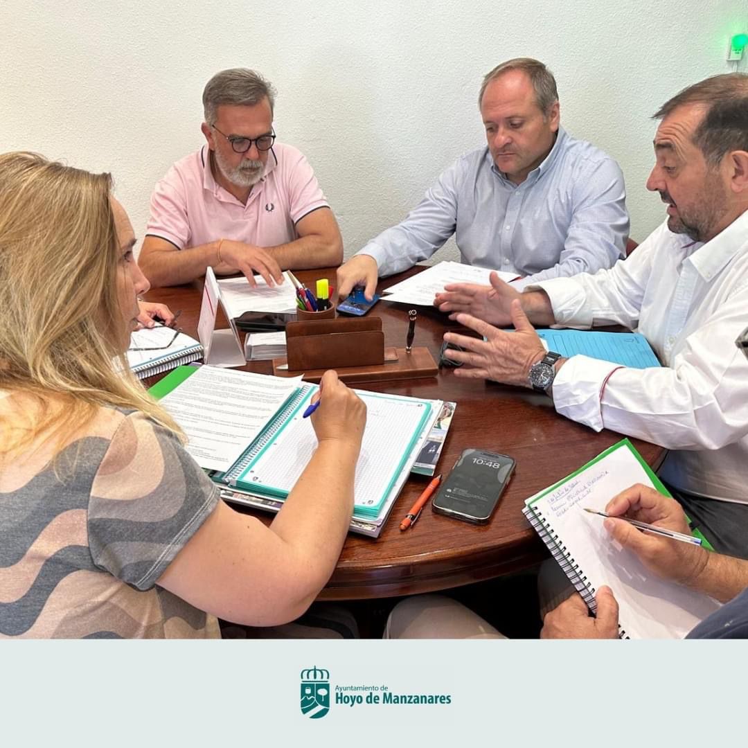 La alcaldesa de Hoyo de Manzanares, Victoria Barderas, junto con técnicos municipales, se han reunido con la consultora que está realizando los pliegos de licitación para la renovación de todo el alumbrado en el municipio.