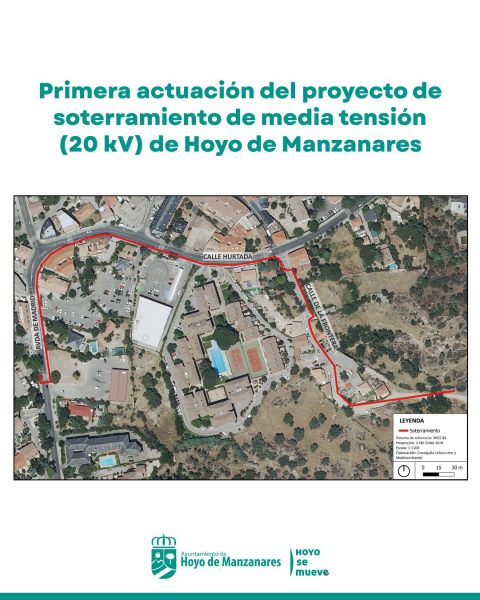 El Ayuntamiento de Hoyo de Manzanares ha puesto en marcha el plan de soterramiento de las líneas aéreas de media tensión (20 kV) en el municipio. Esta primera actuación, promovida directamente por la empresa distribuidora I-DE Redes Eléctricas Inteligentes S.A.U., comprende el soterramiento de las líneas situadas en la calle de la Frontera, calle Hurtada y avenida de Madrid, con el objetivo de mejorar la seguridad, modernizar la red eléctrica y reducir el impacto visual.