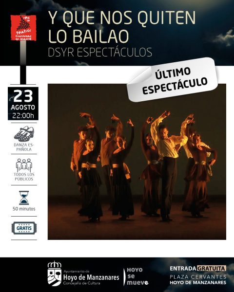 Este sábado 23 de agosto, la Plaza Cervantes de Hoyo de Manzanares acogerá el último espectáculo del festival Buenas Noches con la danza española de Y que nos quiten lo bailao, un viaje por los últimos diez años de la danza. La 34ª edición del festival llega a su fin tras siete noches llenas de arte, pasión y emoción, con los mejores espectáculos de música clásica, jazz, clown, ópera, flamenco y danza.