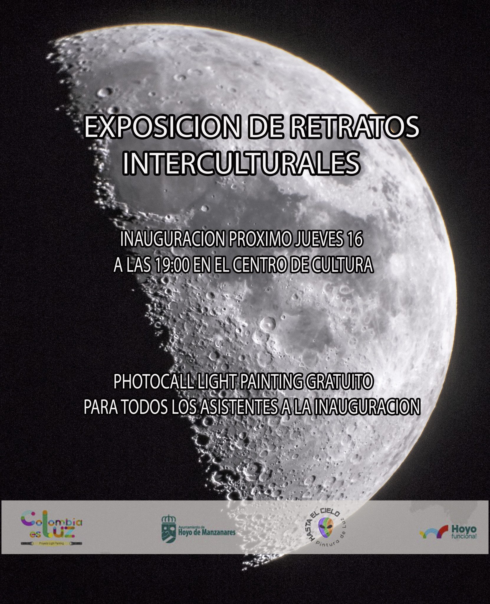 Así, este jueves, a las 19.00 horas, se inaugurará la muestra en la que se podrán encontrar retratos de vecinos y vecinas hoyenses de las muy diversas naciones y culturas que conforman la localidad humana: España, Marruecos, Bolivia, China, Colombia, Bulgaria, Senegal, Georgia, Ucrania… «Esta luna de Hoyo, captada por el diafragma del vecino de la localidad Ricardo Diosa – colombiano de origen, hoyense de adopción -, es la de todas las culturas de nuestro mundo. Todas ellas representan nuestra enorme riqueza intercultural».
