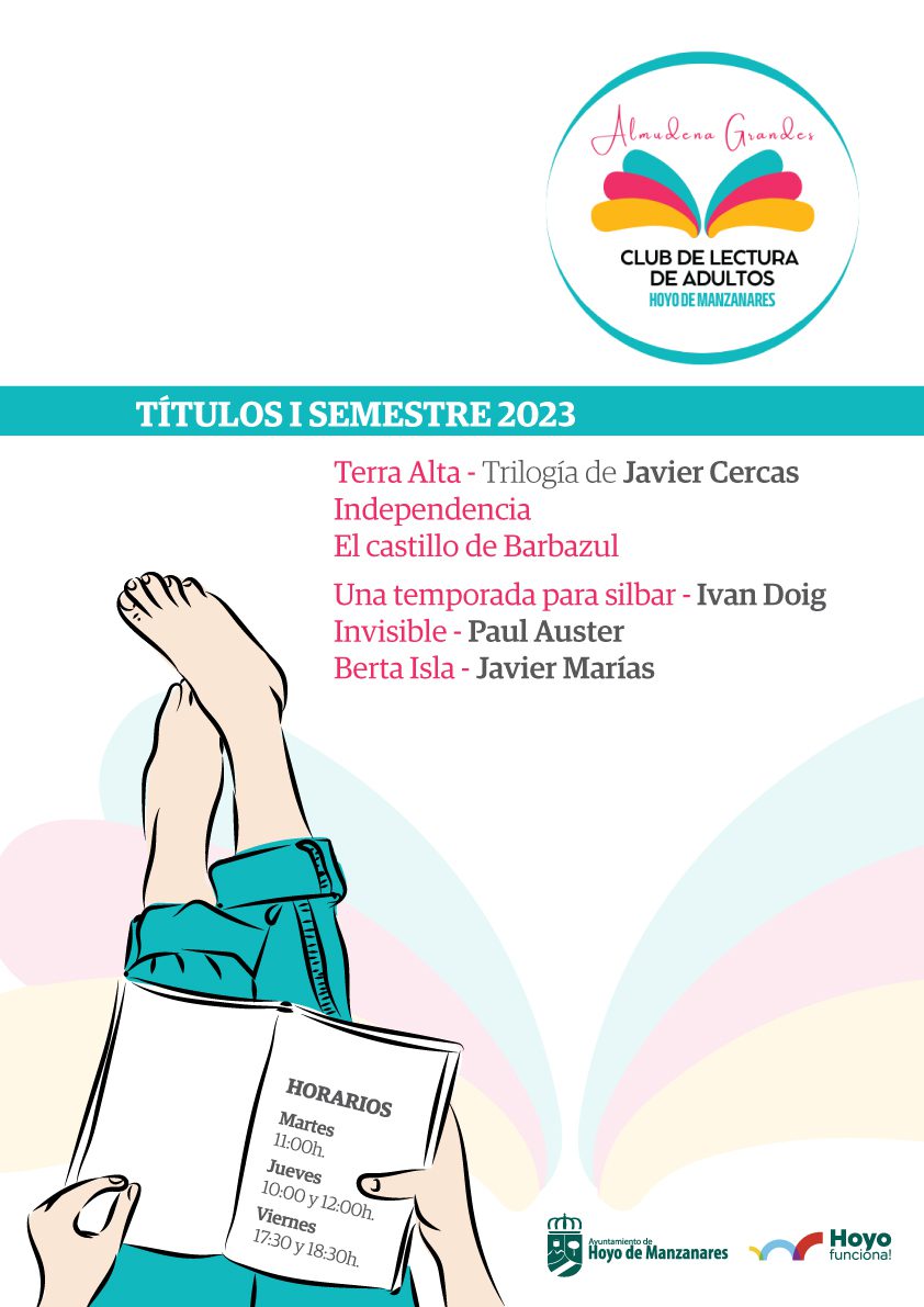 Los nuevos títulos del I semestre del Club de Lectura de Adultos, Almudena Grandes de Hoyo de Manzanares de los autores Javier Cercas y su última trilogía, Iván Doig, Paul Auster y Javier