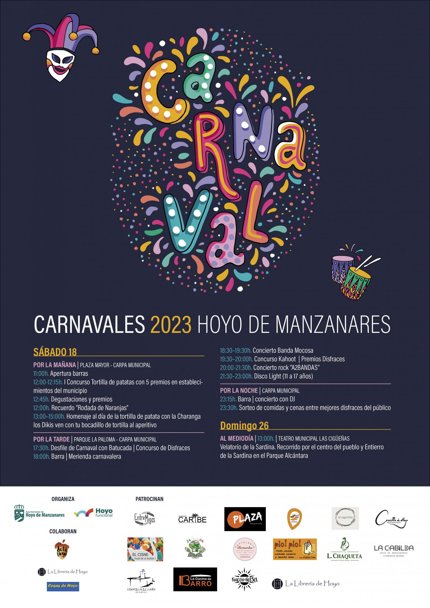 El sábado 18 y el domingo 26 de febrero Hoyo de Manzanares celebrará el Carnaval, donde además de los tradicionales desfiles, concursos de disfraces y fiesta con DJ, este año se incluyen dos novedades: un concurso de tortilla de patatas y otro de preguntas y respuestas a través de la app móvil Kahoot!