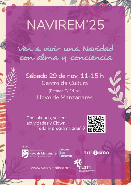 El sábado 29 de noviembre, de 11.00 a 15.00 horas, el Centro de Cultura de Hoyo de Manzanares abrirá sus puertas para celebrar NaviRem 2025, el tradicional mercado navideño organizado por la Red de Emprendedoras en Movimiento (Rem) con la colaboración del Ayuntamiento. Esta nueva edición pone el foco en el consumo responsable y en el emprendimiento femenino sostenible, ofreciendo una jornada donde comprar, aprender y disfrutar se dan la mano en un ambiente festivo y solidario.