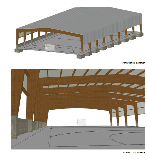 La nueva se instalación se iba a levantar en el mismo espacio que ahora ocupa una de las pistas al aire libre del centro. Tendría una superficie útil de casi 1.000 metros cuadrados, con una altura máxima interior de 6,13 metros. Se había proyectado una estructura de madera y cubierta con panel sándwich con sus lados perimetrales abiertos. A pesar de no contar con cerramientos laterales, el acceso a la pista se haría desde zonas puntuales, como las escaleras o las rampas dispuestas, debido a la topografía del terreno.