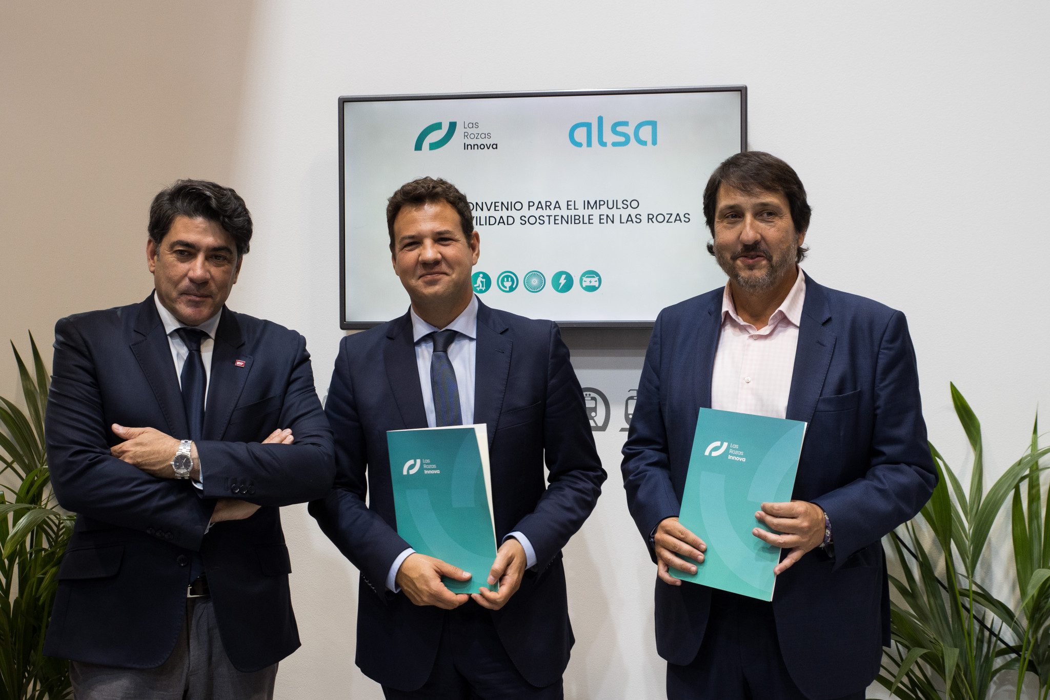 Las Rozas Innova y Alsa han firmado hoy un acuerdo de colaboración para el desarrollo conjunto de actuaciones en la ciudad que fomenten una movilidad sostenible, multimodal y conectada. El acuerdo, firmado por el presidente de Las Rozas Innova y alcalde de Las Rozas, José de la Uz; y el consejero delegado de Alsa, Francisco Iglesias, se ha llevado a cabo en el stand del Consorcio Regional de Transportes en el Global Mobility Call que se está celebrando en Ifema, en presencia del consejero de Transportes de la Comunidad de Madrid, David Pérez.