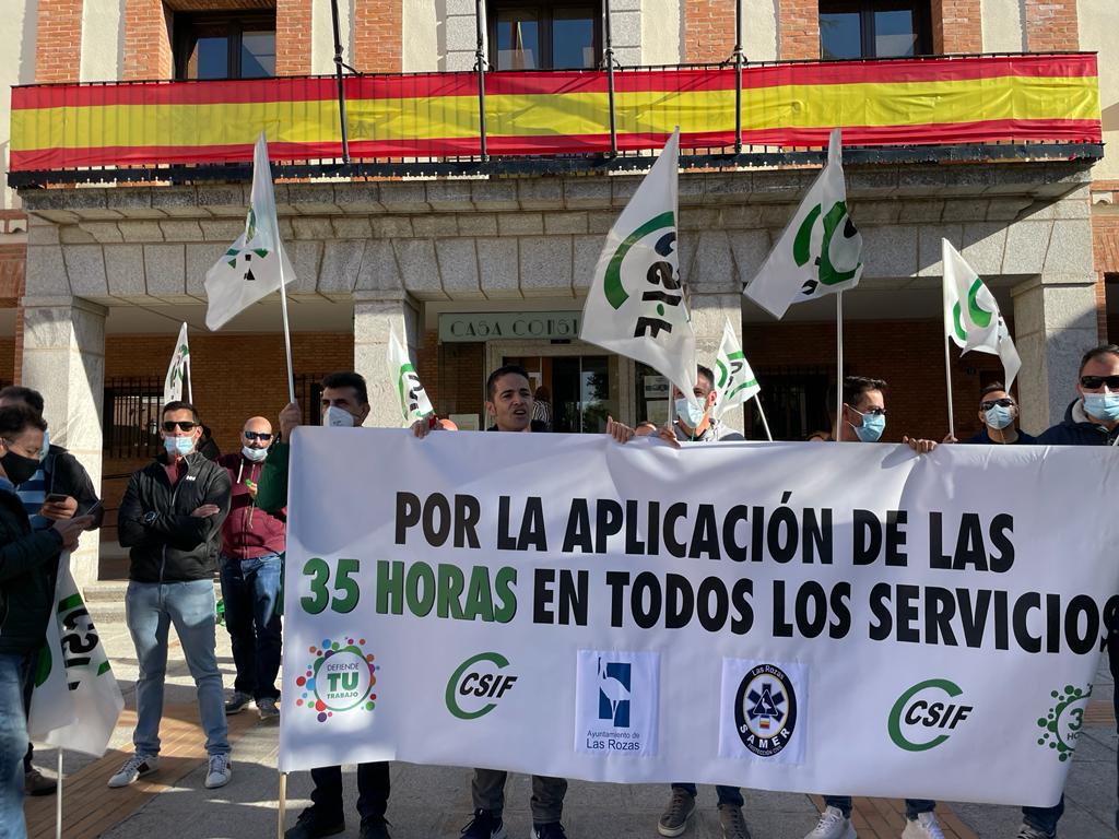 La Central Sindical Independiente y de Funcionarios (CSIF), sindicato más representativo en las administraciones públicas y con presencia creciente en el sector privado, ha celebrado en la mañana de hoy una concentración con el fin de reclamar las 35 horas para los trabajadores del Servicio de Asistencia Municipal, Emergencias y Rescate del Ayuntamiento de Las Rozas (SAMER).