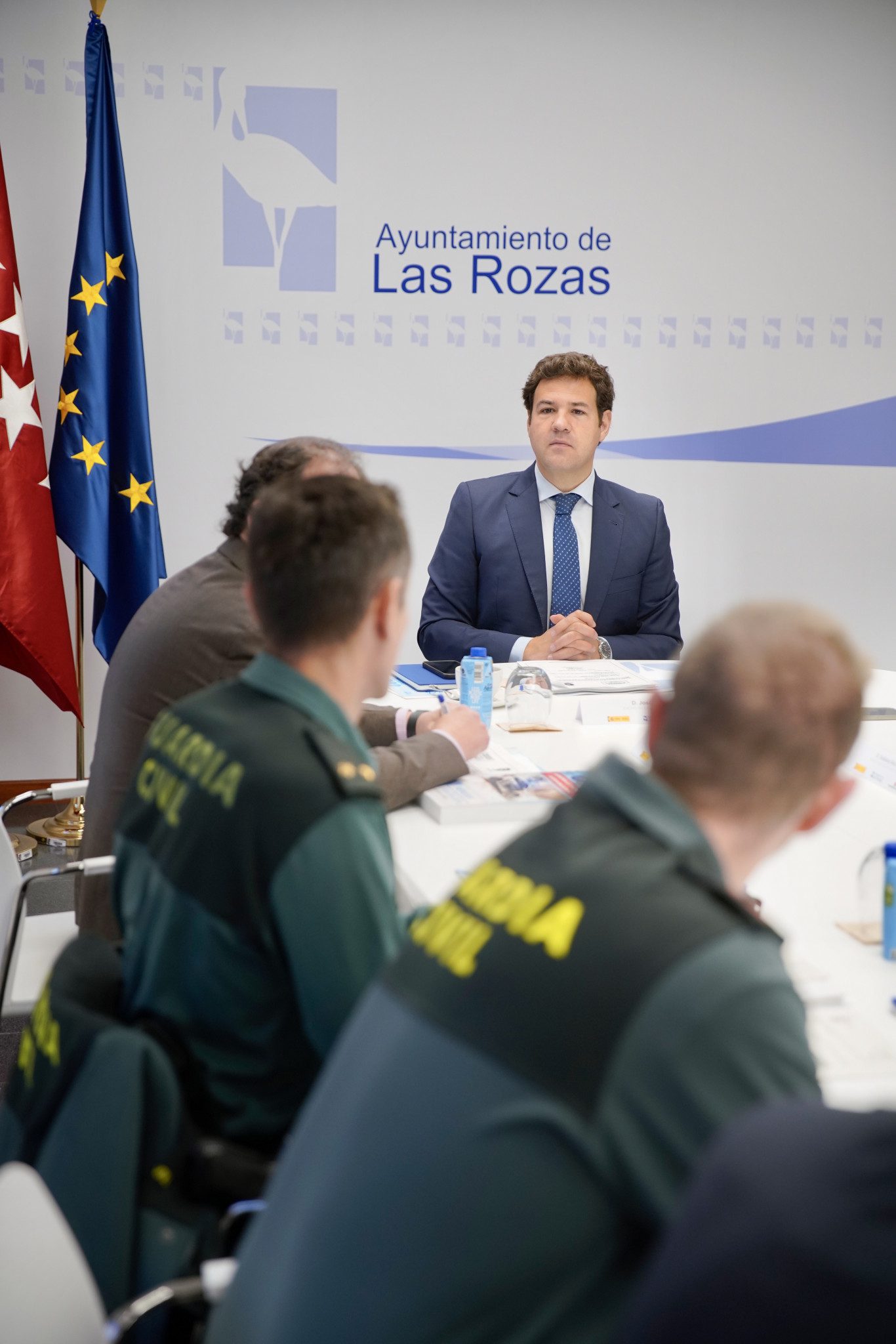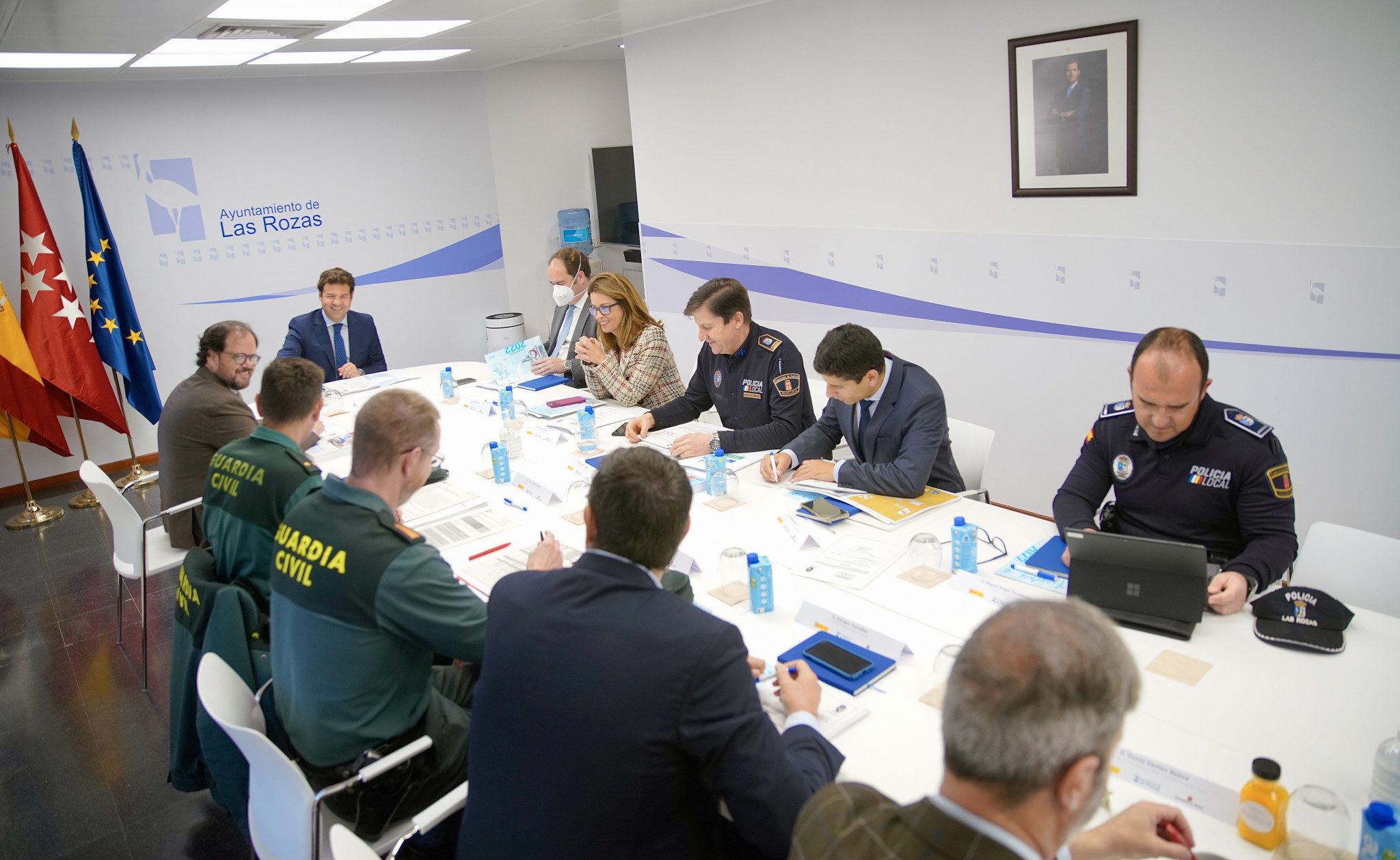 La reunión estuvo presidida por el alcalde de Las Rozas, José de la Uz, y el director general de Seguridad de la Comunidad de Madrid, Luis Miguel Torres, junto con el jefe de Policía Local, Manuel López, así como representantes de la Delegación del Gobierno y la Guardia Civil. En representación del Gobierno municipal, asistieron los concejales Gustavo Rico, (Presidencia, Urbanismo y Portavoz); Natalia Rey (Seguridad); Enrique González (Fiestas) y David Santos (Sanidad, Emergencias y SAMER).