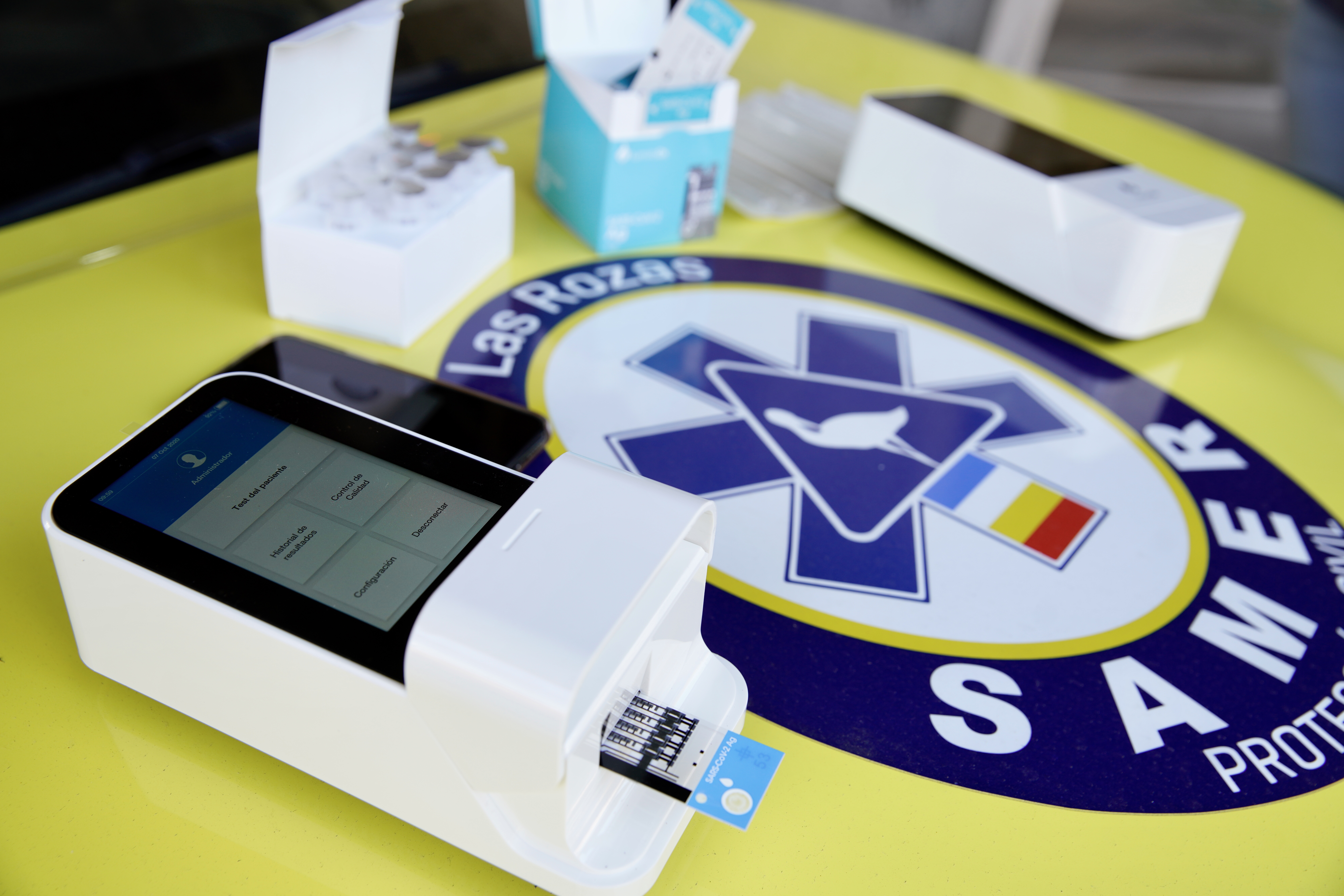 El Servicio de Asistencia Municipal, Emergencias y Rescate del Ayuntamiento de Las Rozas, SAMER– Protección Civil, ha recibido hoy los tres dispositivos de diagnosis de la Covid-19 mediante test de antígenos que desde este momento se incorporan a su equipamiento. Las tres unidades, adquiridas a través de la Concejalía de Sanidad, y cedidos al SAMER, son dispositivos compactos y portátiles que incorporan la última tecnología para la detección de determinadas proteínas presentes en el virus que causa Covid-19, lo que se conoce como test de antígenos.