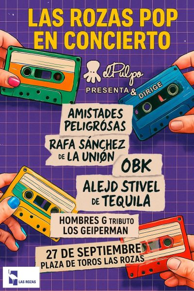 La programación de Fiestas de San Miguel 2025 contará con las actuaciones principales de Mikel Izal (viernes 26) y Las Rozas PoP, con El Pulpo, Amistades Peligrosas, OBK, Rafa Sánchez de La Unión, Alejo Stivel de Tequila y el Tributo a Hombres G de Los Geiperman (sábado 27), ambos en el Centro Multiusos Alcalde Bonifacio de Santiago.