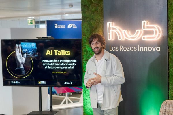 La jornada fue inaugurada por José Cabrera, segundo teniente de alcalde y concejal de Infraestructuras del Ayuntamiento de Las Rozas. Cabrera señaló el “esfuerzo que estamos haciendo tanto desde el Ayuntamiento como desde Las Rozas para aprovechar la IA en la mejora de la ciudad. La usamos en los servicios municipales: en nuestro sistema de 300 videocámaras con IA que contribuyen a hacer de Las Rozas un municipio más seguro; y en proyectos liderados por Las Rozas Innova que nos han servido para analizar y luego mejorar la seguridad y la accesibilidad en los aparcamientos y los pasos de cebra o para que los colegios reduzcan el desperdicio alimentario en sus comedores”. Por último, el evento fue clausurado por Ana Herrera, directora de Desarrollo Empresarial y Emprendimiento de Las Rozas Innova, quien presentó a los asistentes el Hub Las Rozas Innova y sus servicios para startups, junto al CEO de Thinkia, Rafael Conde, que destacó que “la Inteligencia Artificial no es solo una tecnología, sino una nueva forma de pensar y crear valor. Eventos como AI Talks nos permiten conectar conocimiento, talento y propósito, generando un ecosistema más colaborativo, preparado para liderar el futuro”.