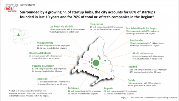 Según detalla el informe Startup Radar de Madri+d, tras la ciudad de Madrid y de Las Rozas, son Alcobendas, Pozuelo y Leganés las ciudades que cuentan con más startups en sus ecosistemas.