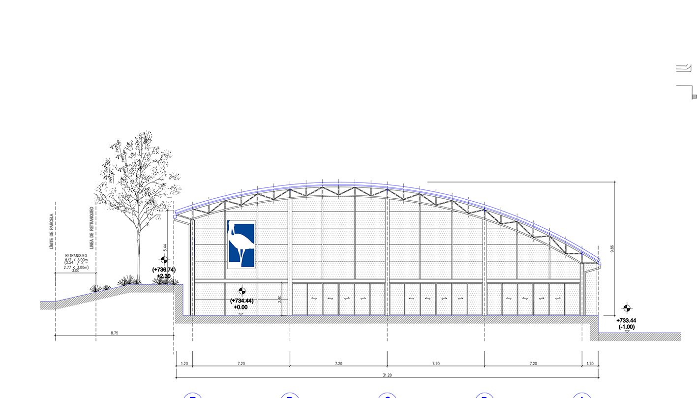 El proyecto contempla la remodelación completa, con un nuevo solado y la instalación de una cubierta de acero laminado para una superficie total de 1.400 metros cuadrados bajo la que quedarán tanto la nueva pista como las gradas para público y las diferentes estancias de servicio. En concreto se trata de dos zonas de vestuario para uso simultáneo, con dos salas independientes y aseos y duchas comunes. A ello se suma una zona de vestuario para árbitros; una sala para botiquín y firma de actas, aseos y varias zonas de almacenaje. Sobre esta construcción, con acceso directo a la pista, es donde se ubicarán las gradas, que quedarán situadas por tanto en altura para una mejor visión de la zona deportiva.