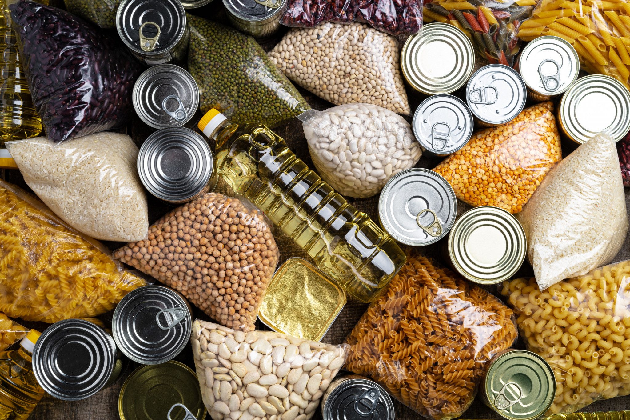 Listado de alimentos y materiales necesarios: Comida enlatada no en cristal, Legumbres, Pastas y arroces, Comida energética, Leche en polvo, Café soluble, Cacao, Té, Galletas, Frutos secos, Alimentos infantiles.