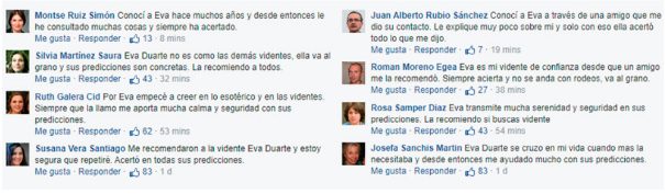 Es ya una de las videntes sin preguntas españolas más queridas y apreciadas. Su alto porcentaje de aciertos y el amplio reconocimiento que ha conseguido en estos años ha convertido a Eva en una de las videntes más queridas y respetadas.