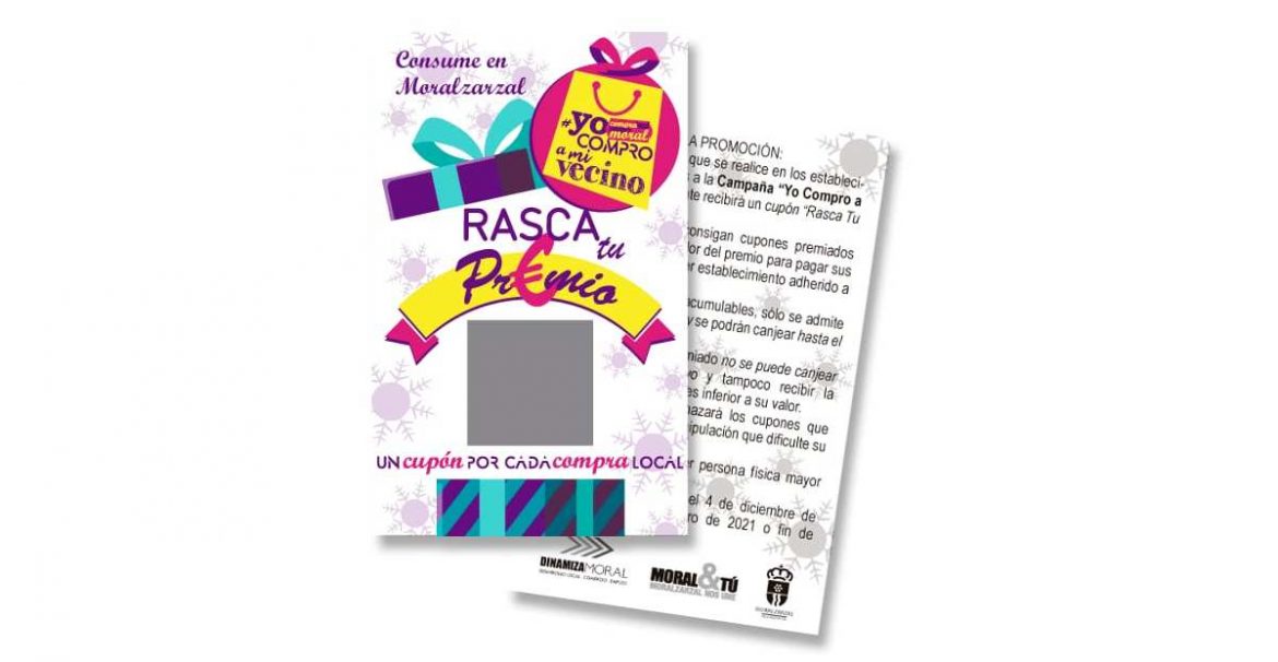 Estas Navidades comprar en el comercio local de Moralzarzal tiene premio. Entre el 4 de diciembre y el 5 de enero (o fin de existencias) puedes obtener cupones por valor de 5, 10, 20 y 30 euros para gastar en cualquiera de los establecimientos adheridos a esta iniciativa. En total hay 600 cupones con premio, que suman un total de 9.000 euros. Pregunta en tu tienda por los cupones, rasca y obtén un premio.