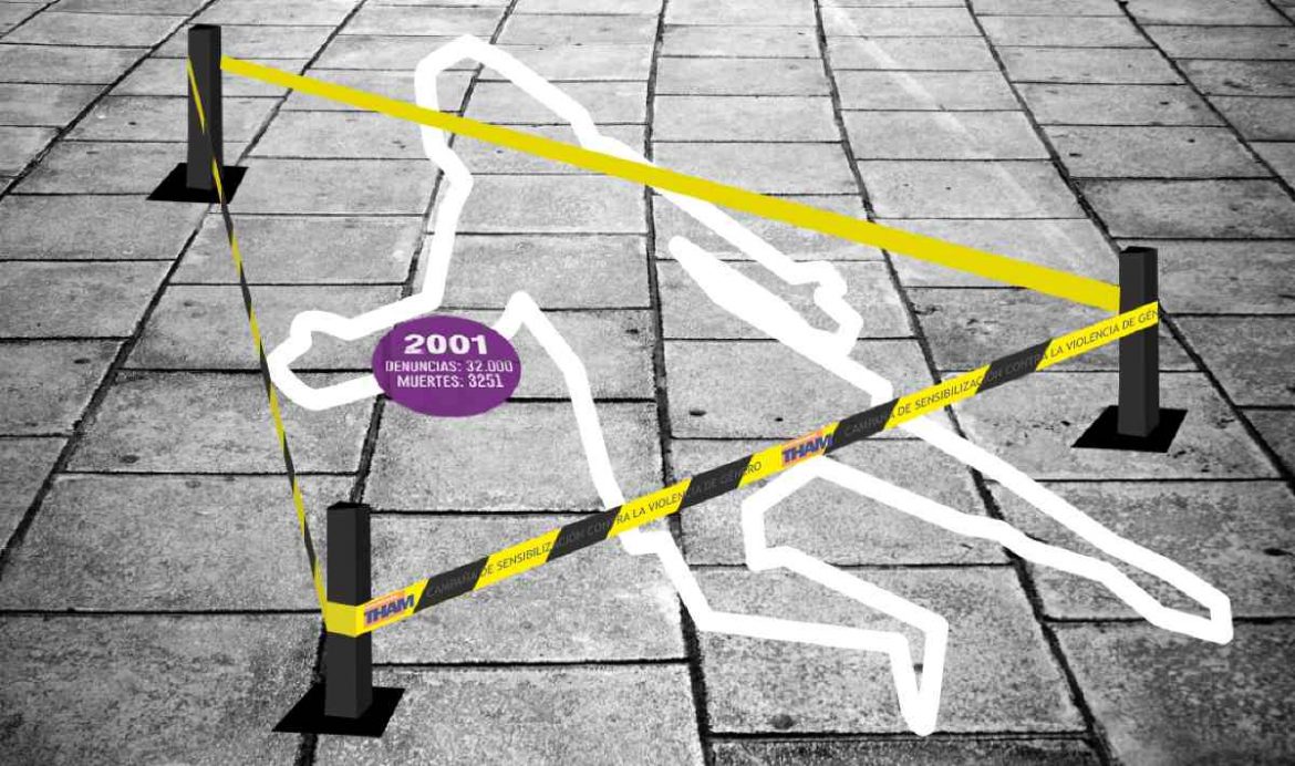 El Ayuntamiento de Moralzarzal ha colocado en diferentes puntos de la localidad instalaciones que denuncian la violencia machista a través de simulaciones de la escena de un crimen, junto a paneles que informan del número de denuncias y muertes producidas en los últimos años en España por violencia de género.