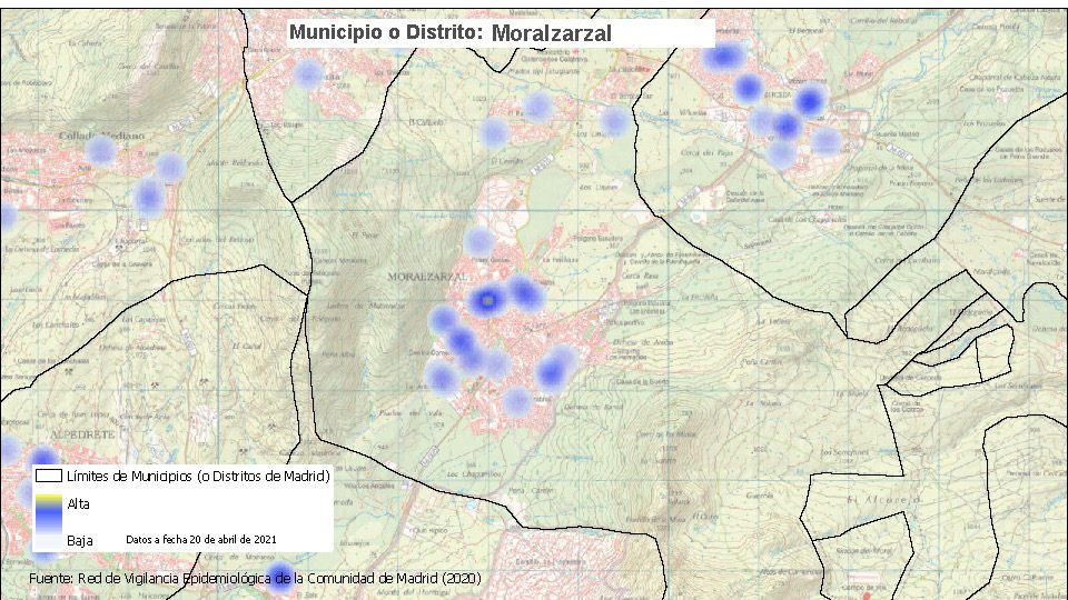 Por contra, la directora general de Salud Pública, Elena Andradas ha anunciado la prórroga por siete días más -hasta el 3 de mayo- del cierre perimetral de Moralzarzal, donde la incidencia es de 562,47. En los últimos 14 días se han notificado 74 casos (4 más que en el anterior informe). Desde el lunes 5 de abril se aplican restricciones de movilidad.
