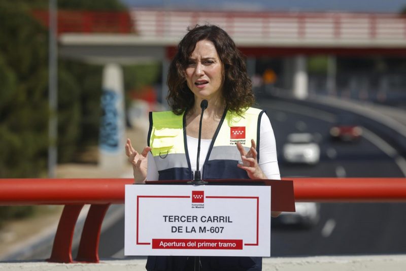 La presidenta de la Comunidad de Madrid, Isabel Díaz Ayuso, ha asistido hoy a la apertura al tráfico del primer tramo finalizado de las obras de ampliación de la M-607, justo un año después de iniciar este proyecto para construir un tercer carril que facilitará los desplazamientos entre Tres Cantos Norte y la variante sur de Colmenar Viejo.