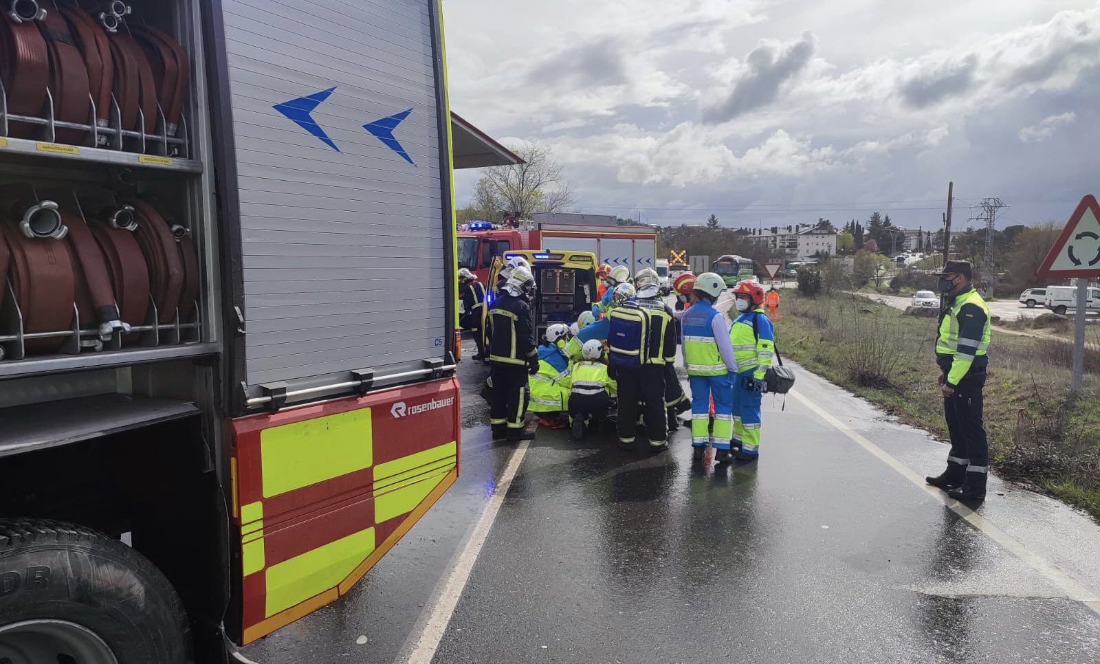 Rescatada una mujer tras impactar su vehículo con un autobús interurbano en Collado Villalba