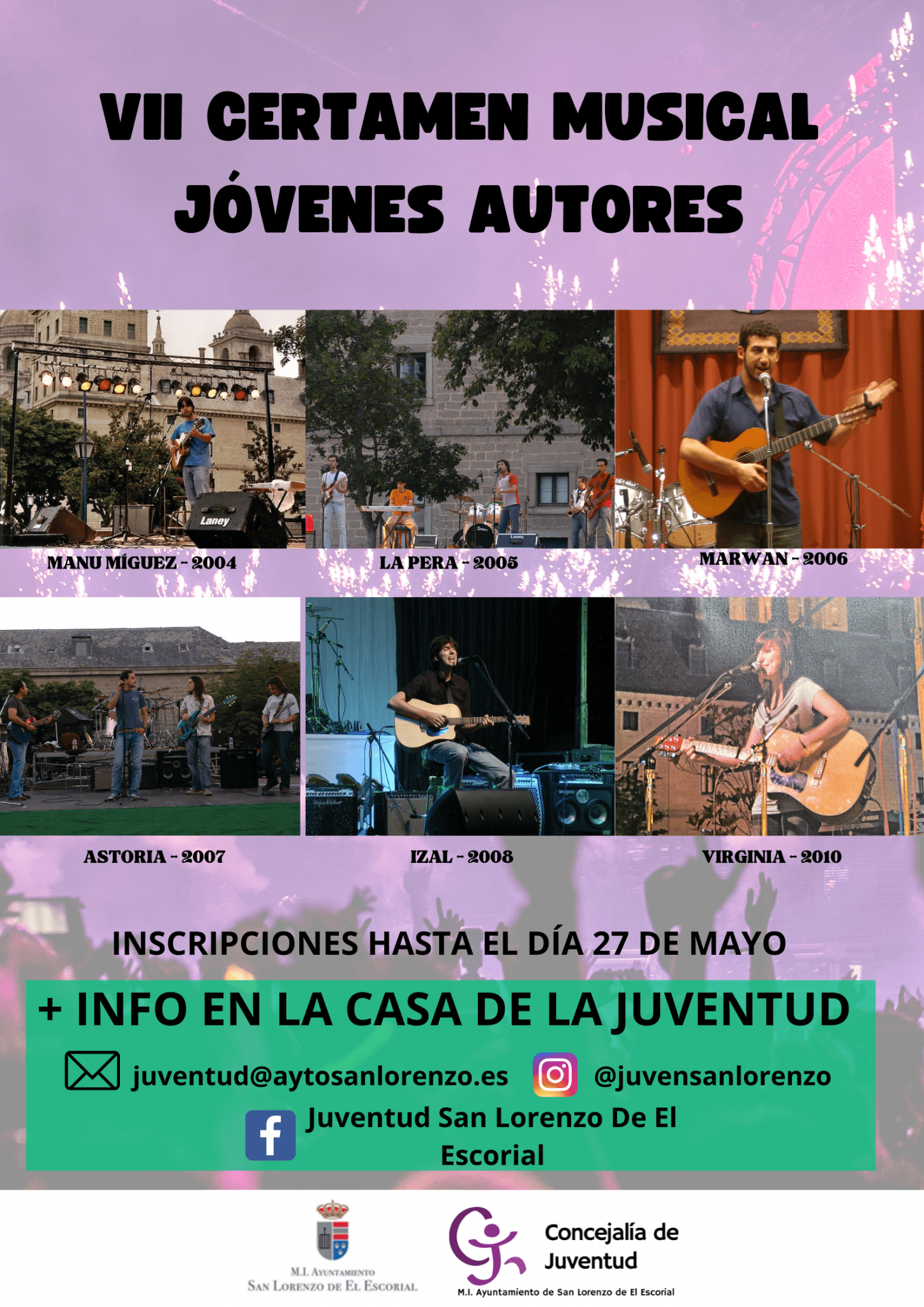 Con el objetivo de apoyar e incentivar a jóvenes músicos de la Comunidad de Madrid, el Ayuntamiento de San Lorenzo de El Escorial convoca el VII Certamen Musical de Jóvenes Autores, dirigido a cantautores y bandas musicales cuyos integrantes tengan entre 16 y 35 años.