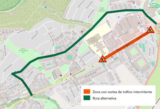 Los trabajos se desarrollan en la carretera de Guadarrama, desde la rotonda de la M-600 (antigua Cruz Roja) hasta la Academia de la Guardia Civil (cruce con la calle Escritores); y en la carretera de Robledo, desde el castaño hasta la Cuesta de los Pastores.