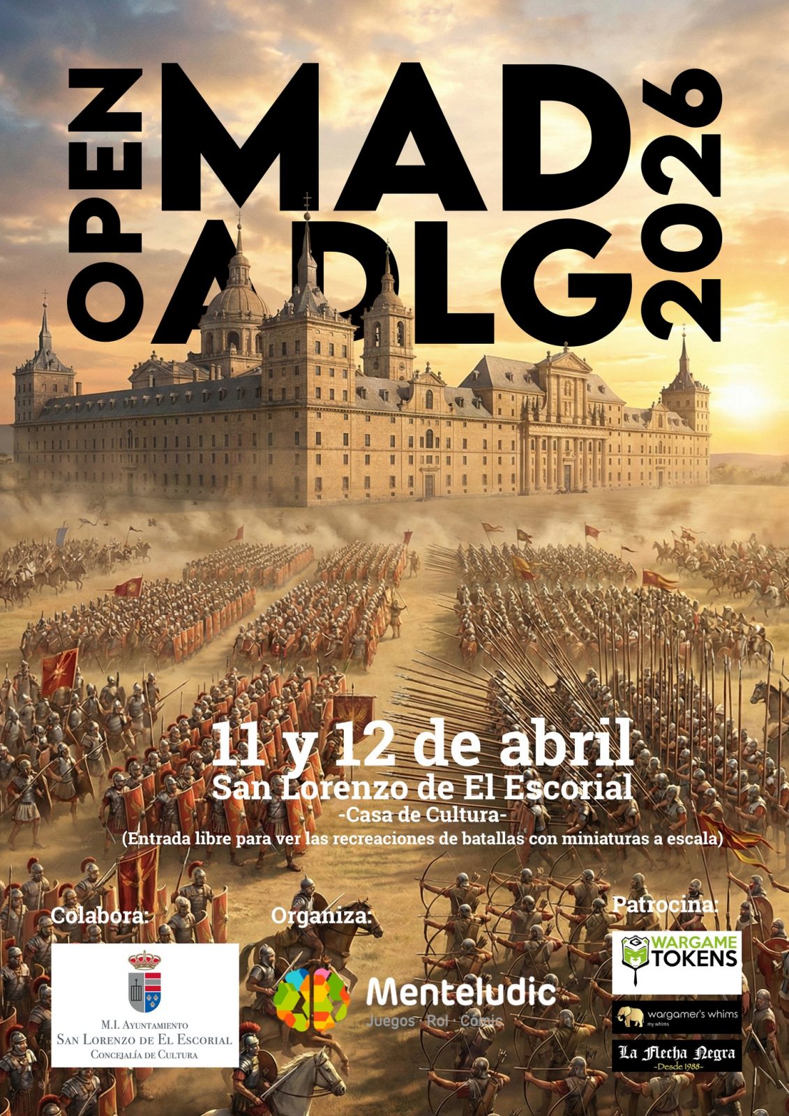 San Lorenzo de El Escorial acoge este fin de semana (sábado 11 y domingo 12 de abril) el Torneo Internacional II Abierto de Madrid Art de la Guerre (ADLG MAD OPEN 2026), un evento del prestigioso juego táctico de batallas históricas con miniaturas pintadas a mano “L’art de la Guerre”, que reunirá a aficionados de toda España y de diversos países europeos.