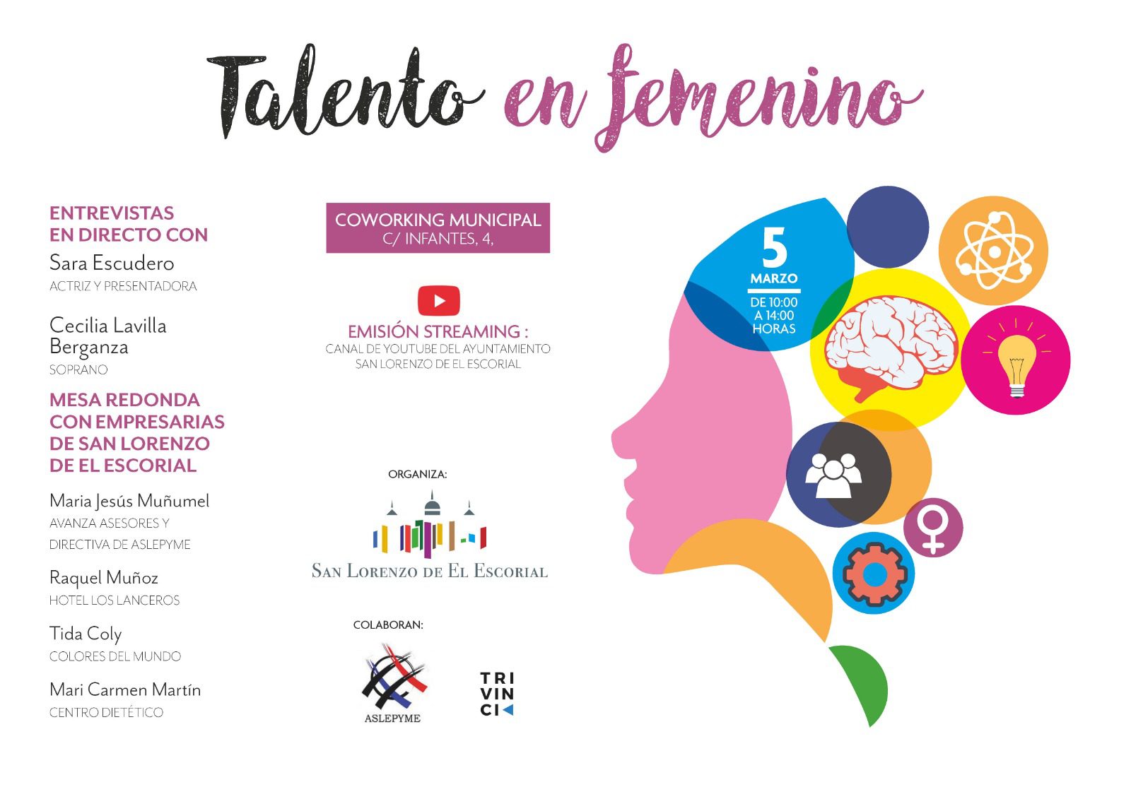 ‘Talento en Femenino’ reunirá en el Coworking Municipal (Calle Infantes, 4), a mujeres emprendedoras que explicarán en un formato innovador de mesas redondas y entrevistas cortas, los retos que han tenido que afrontar para desarrollar sus proyectos profesionales. Toda la jornada se retransmitirá en directo por streaming a través del canal de Youtube del Ayuntamiento de San Lorenzo de El Escorial.