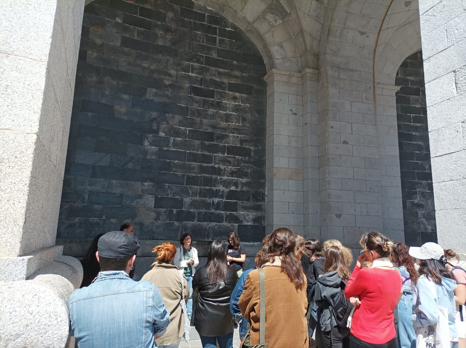 Tras la visita al monumento, donde se ha explicado la diferente iconografía que se observa en el Valle, la evolución de la misma -el proyecto inicial era diferente al final debido a los cambios de política del régimen- y otras cuestiones inevitables como los procesos abiertos para las exhumaciones, los alumnos han tenido posibilidad de desarrollar un debate sobre la manera correcta de encauzar la resignificación en el que se ha llegado al menos a un consenso, todo debe empezar por la educación.